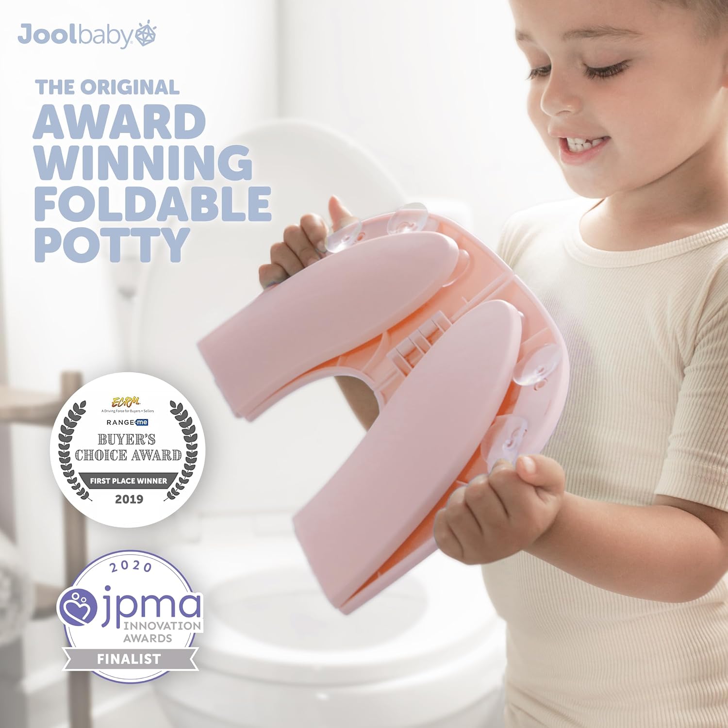 Jool Baby Folding Travel Potty Training Seat for Toddlers, Fits Round & Oval Toilets, Non-Slip Suction Cups, Includes Free Travel Bag (Pink)