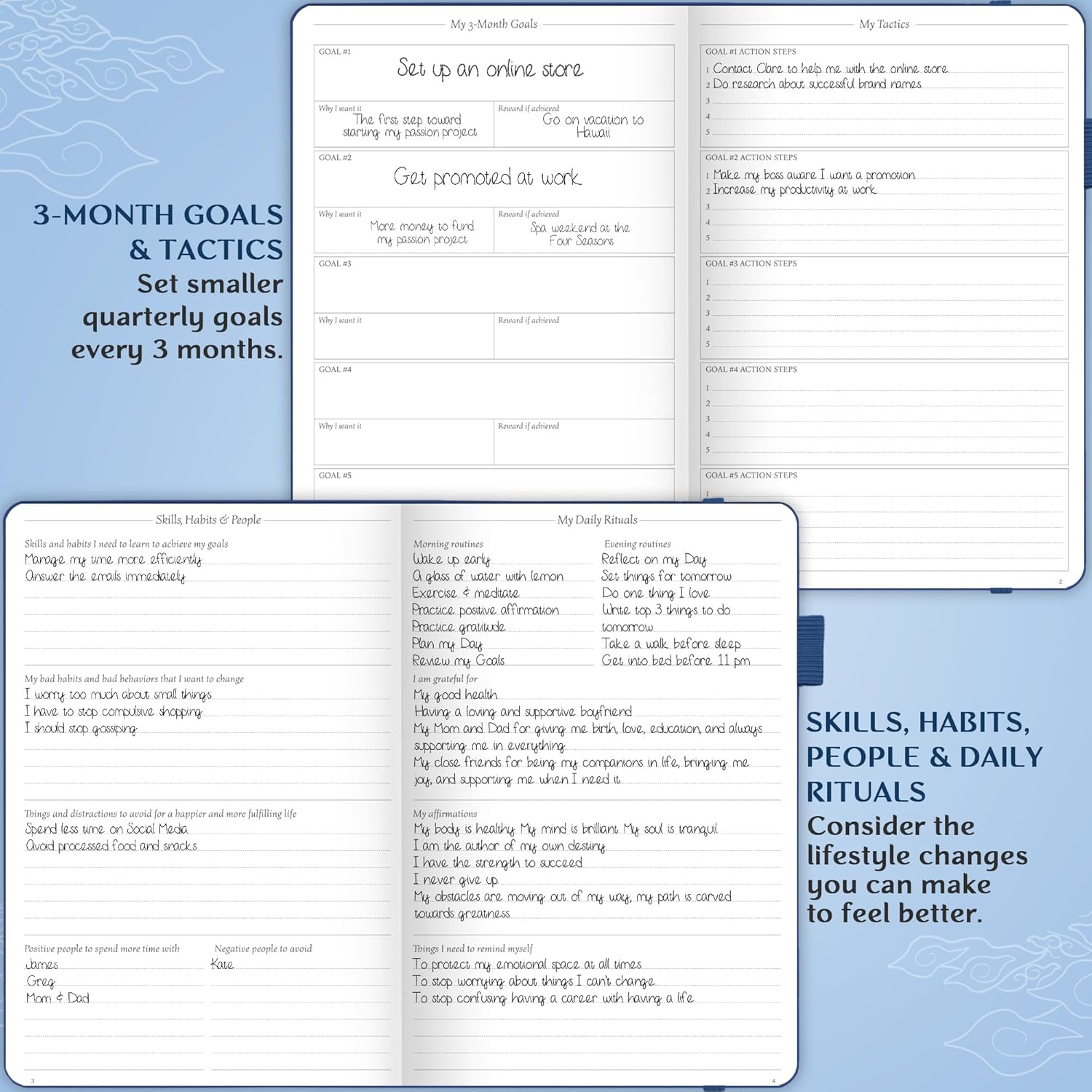 - IMPROVE WORK-LIFE BALANCE, BUILD NEW HABITS & FEEL HAPPIER - Become your best self by setting and achieving goals in all of the important areas of your life, other than work, on a weekly basis. Bring more healthy habits & positive daily rituals into your life, and stick to them by using the habit tracker section of the daily schedule planner for productivity. Incorporate gratitude and affirmation techniques for a more inspired and happier everyday life.