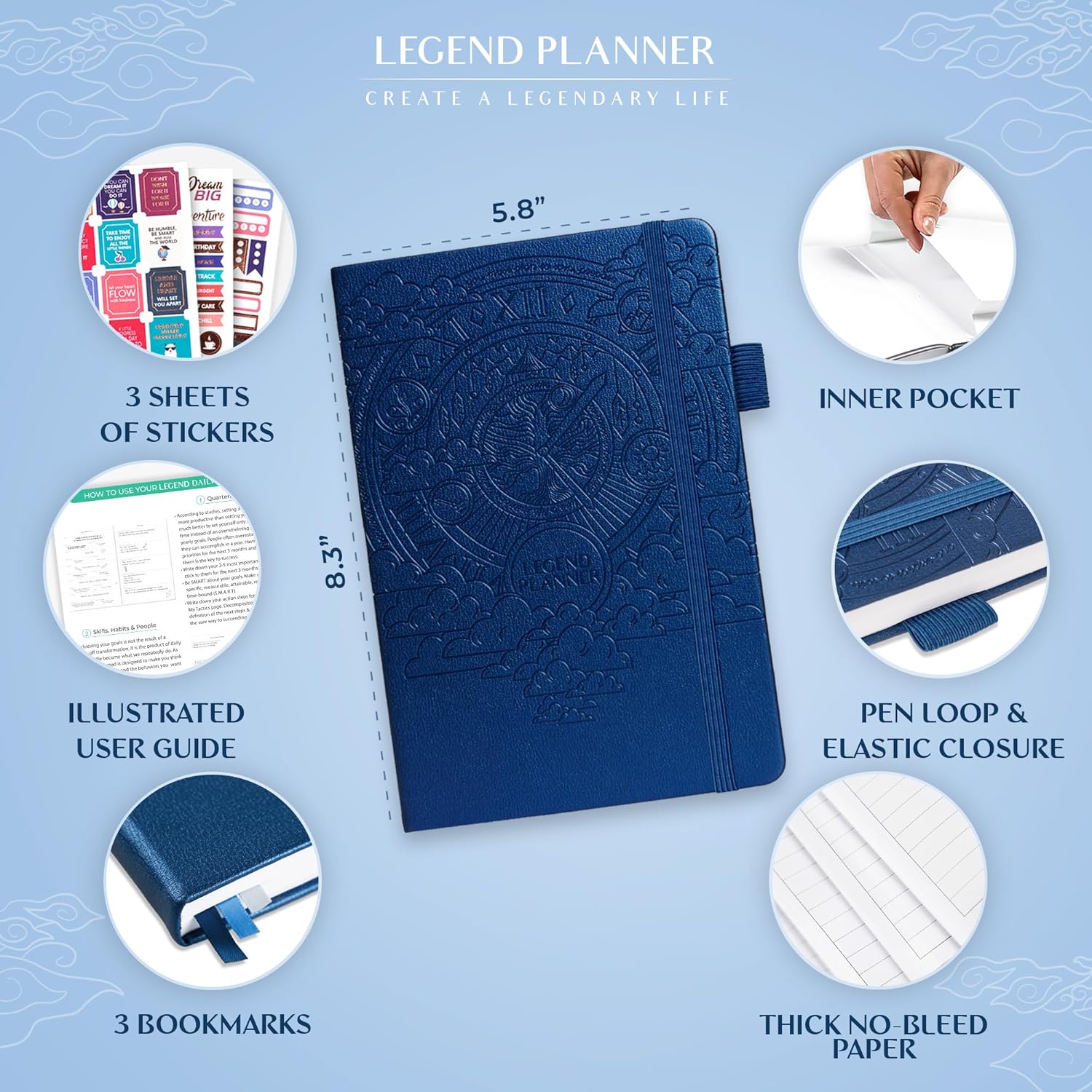Legend Planner Daily for 3 Months – Undated Monthly Weekly & Daily Planner to Hit Goals. Organizer & Productivity Journal, A5 (Mystic Blue)
