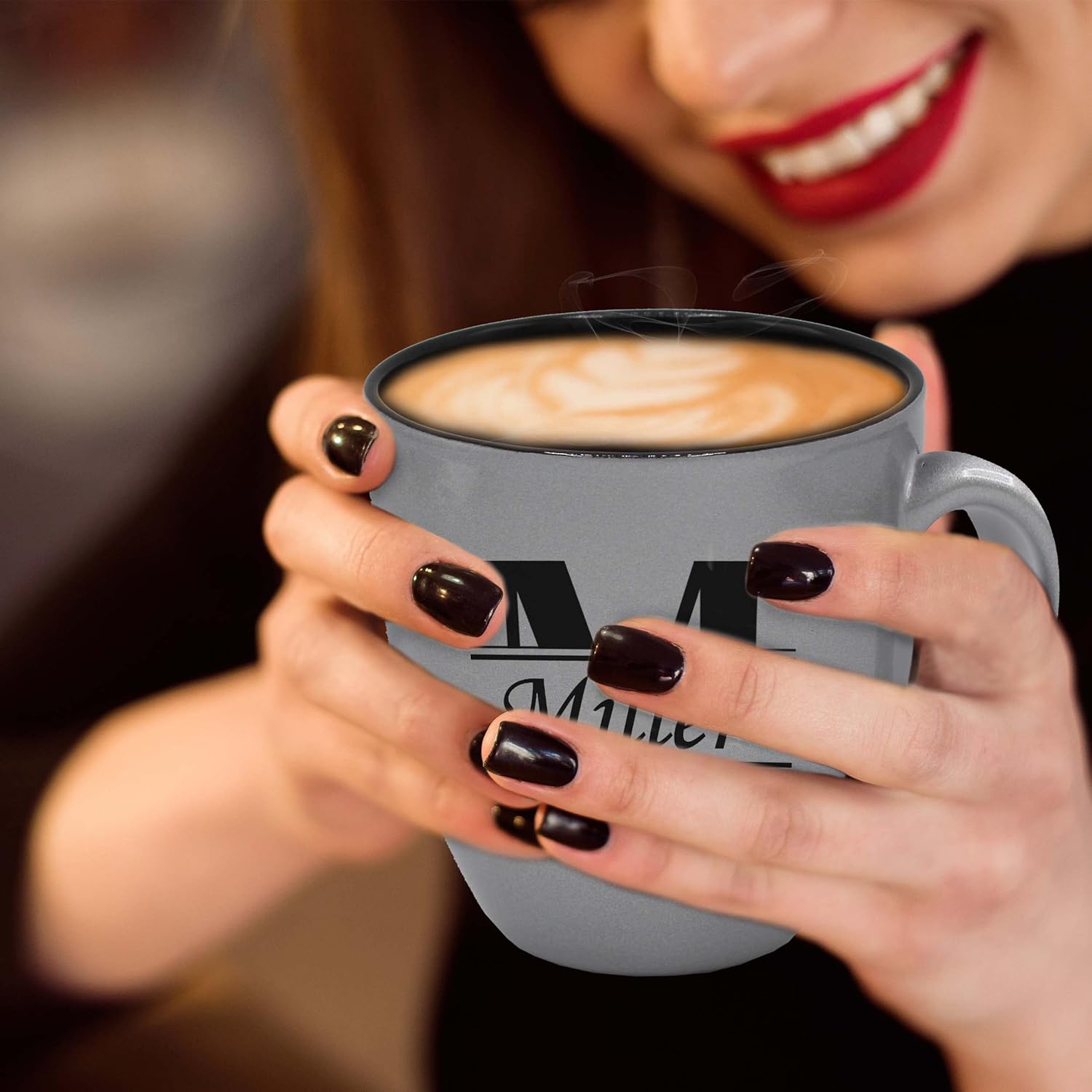 My Personal Memories Custom Monogrammed Coffee Latte Mug and Tea Cup - Personalized and Engraved (Silver)
