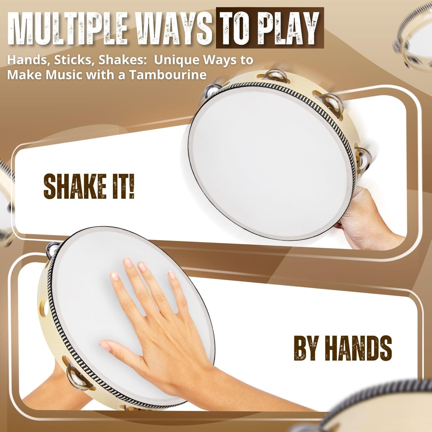 - Unmatched Quality: Crafted from high-quality wood and sturdy drum skin, this tambourine holds up to repeated use, making this tambourines musical instrument adult necessary for any musician or anyone fronting a band