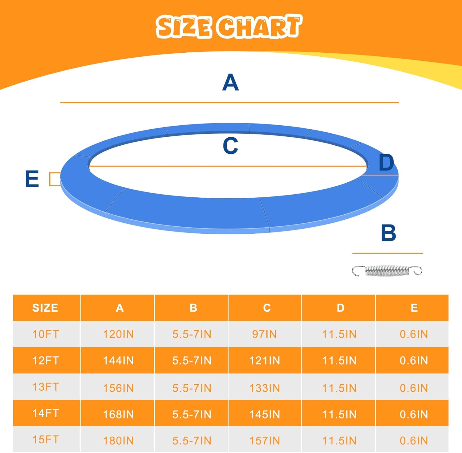 - 👨👩👧👧【270° All-Around Safety Protection】👨👩👧👧At ULTRAPOWER SPORTS, your child's safety comes first! Our trampoline pad replacement is designed to shield kids from exposed springs, preventing injuries while they jump. The extended 270° protective cover wraps around the trampoline frame, offering inside-out protection. Built for durability, it features a 0.55mm thick PVC surface + 0.6-inch protective cotton + an ultra-dense PE bottom, ensuring maximum safety, comfort and fun.