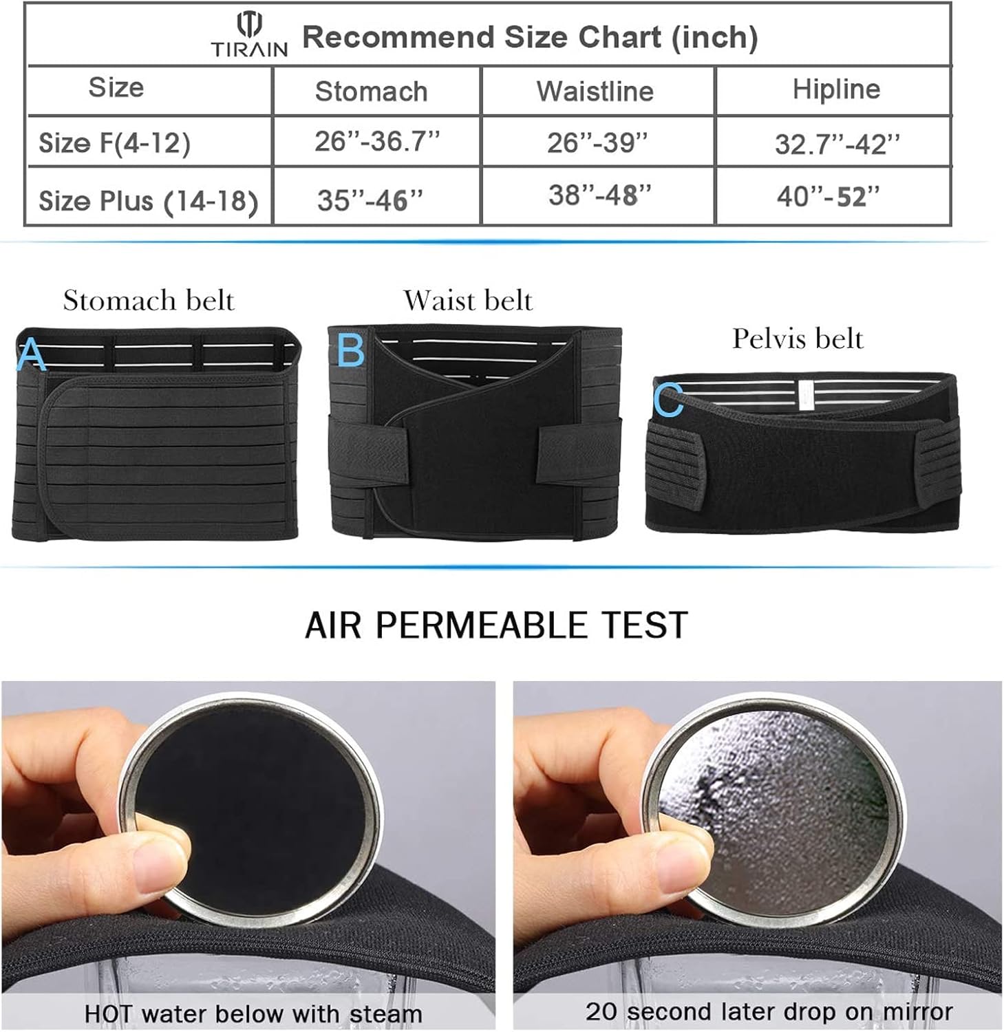 - Comes in Two sizes, ranging from One size to Plus size, and two different colors, Beige and Black,〈One size〉version for most figure, fit weight less than 190lbs【belly belt fits stomach 26"-36.7" ,waist belt fits waistline 26"-39" ,pelvis belt fits hipline 32.7"-42"】.〈Plus size〉increased belt length, please check the size before purchasing, Plus size version for weight over 190lbs【belly belt fits stomach 35"-46",waist belt fits waistline 38"-48" ,pelvis belt fits hipline 40"-52"】.