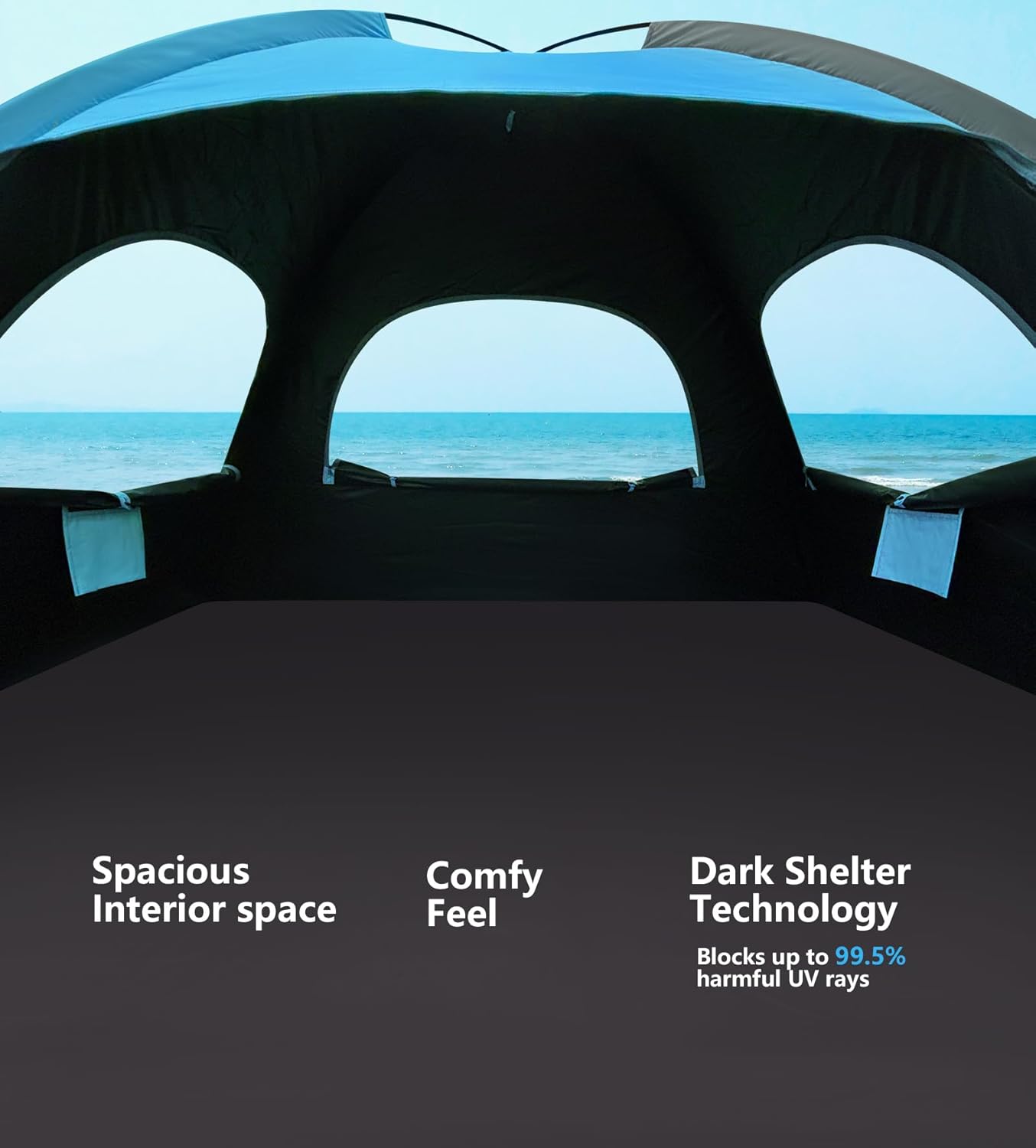 NXONE Beach Tent Sun Shade Shelter for 3/4/6 Person Person with UV Protection, Extended Floor, 3 Mesh Roll Up Windows & 8.0/8.5mm Fiberglass Rods丨Carry Bag Included