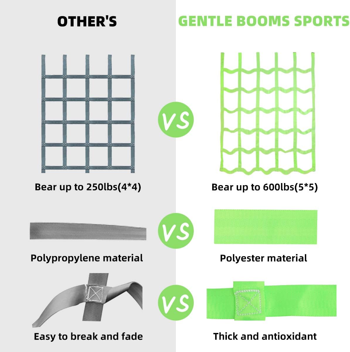 Gentle Booms Sports Climbing Cargo Net for Kids, Ninja Obstacle Course Accessories for Ninja Warrior Trainning, Attachment for Slackline
