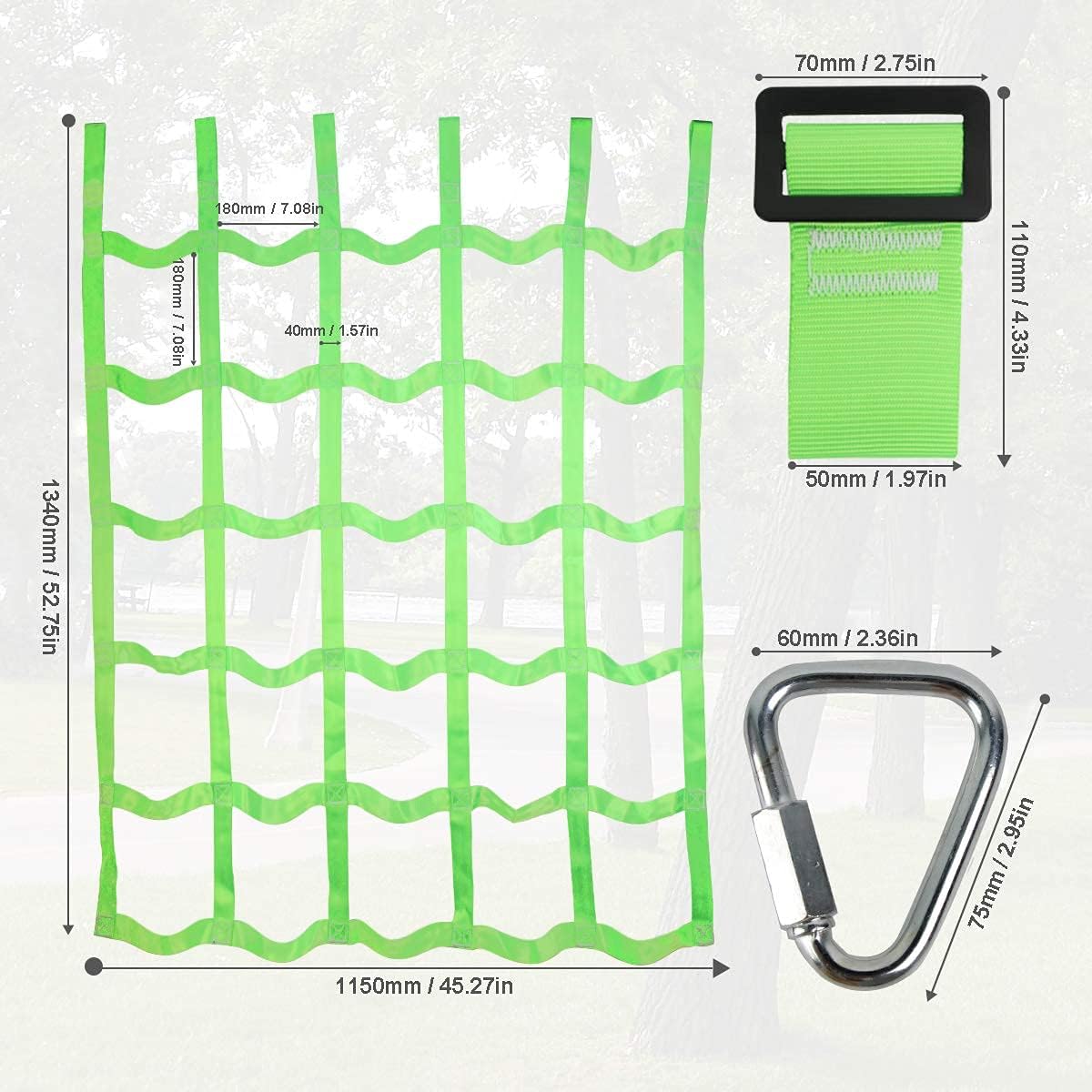 - Premium Material: The climbing cargo net is made from heavy-duty high strength polyester, which is safe and durable enough for kids to grip it tightly, it can last for a long period of time. The size of net is approximate 3.80 ft x 4.42 ft (116 x 135 cm). With the strong bearing ability, the maximum bearing capacity can be weighed up to 600lb