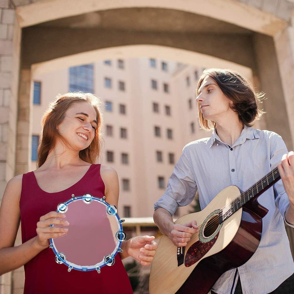 ENNBOM Tambourine Adjustable Tone Hand Drum Double Row Metal Jingles Hand Bell Performance Level Handheld Percussion (Blue)