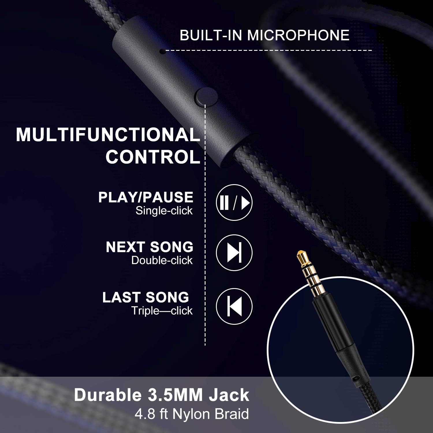 LORELEI X6 Over-Ear Headphones with Microphone, Lightweight Foldable & Portable Stereo Bass Headphones with 1.45M No-Tangle, Wired Headphones for Smartphone Tablet MP3 / 4 (Dark Blue)