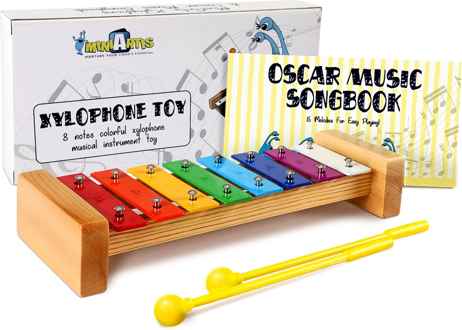- AN EDUCATIONAL MUSICAL ADVENTURE FOR TODDLERS: Welcome your little one to the captivating world of music with our MiniArtis kids xylophone, specially designed for children aged 1-3. This glockenspiel xylophone boasts eight vibrant, color-coded notes, making it an ideal first musical instrument for toddlers. This classic xylophone introduces them to music at an early age, fostering creativity and a lifelong love for music, while also serving as a fantastic educational musical toy.