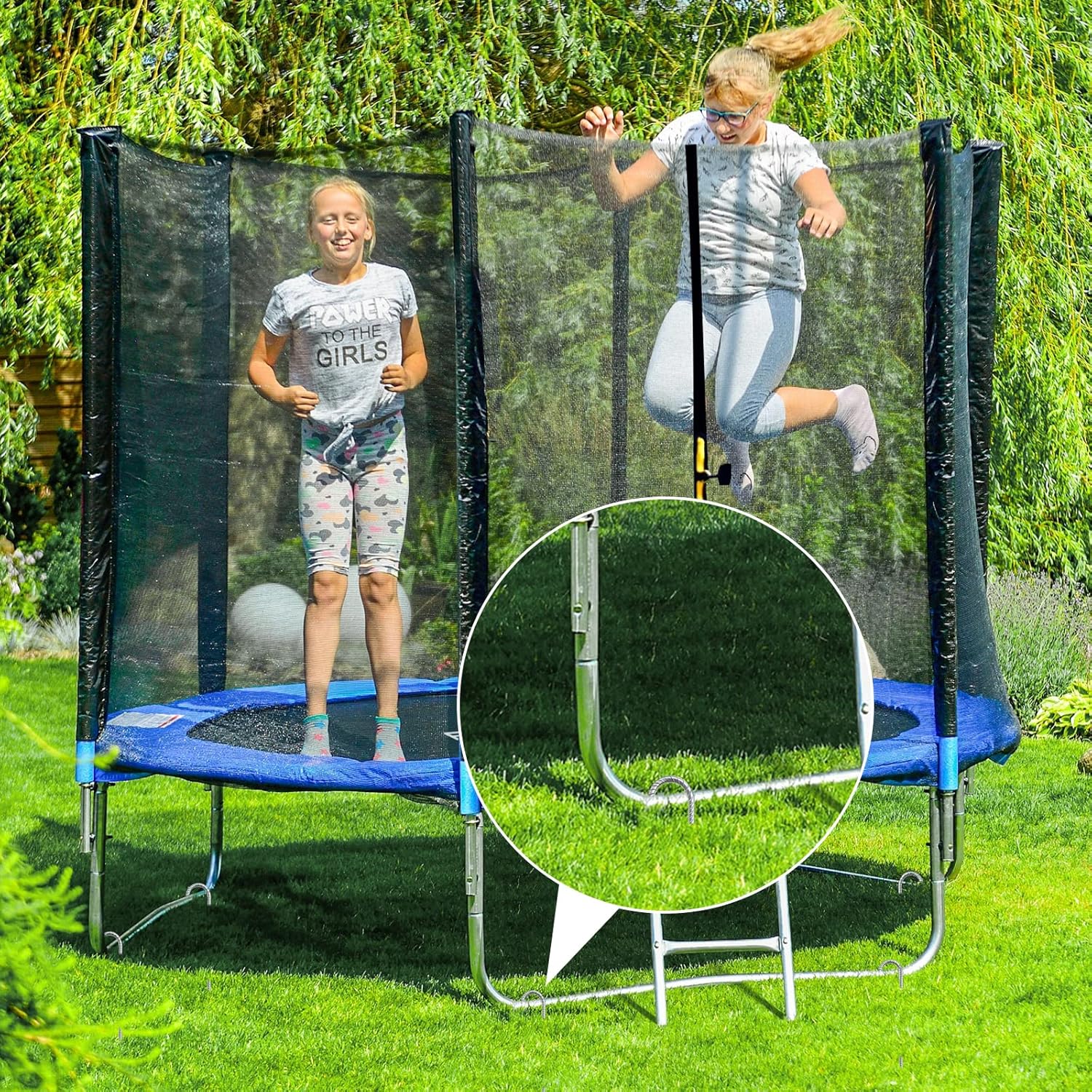 - 【EASY INSTALLATION】 No auxiliary tools required. The chisel pointed end makes the trampoline stakes penetrate into the ground easily. You can step on it to make the rebar stake penetrate deeper into the ground.