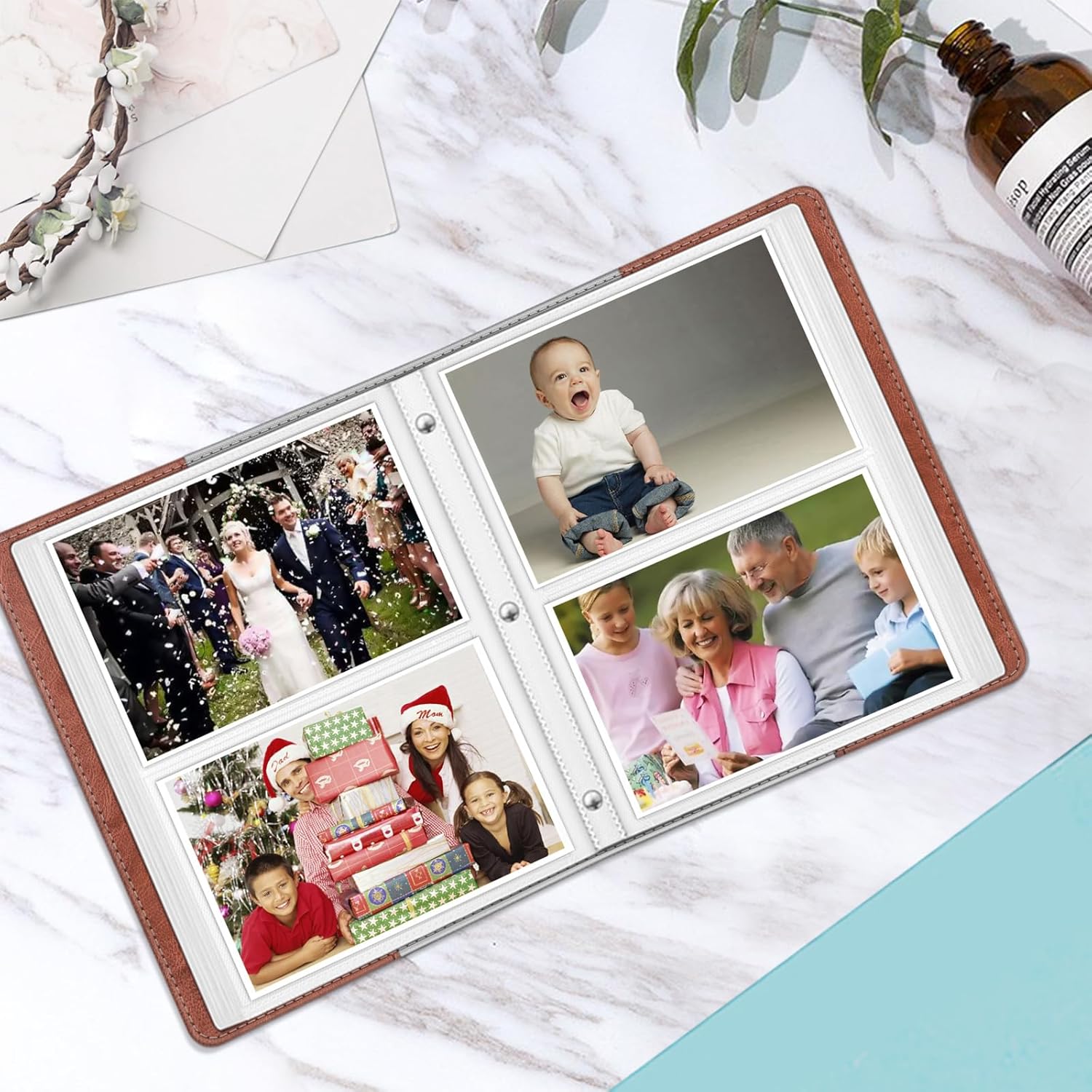 Fintie Photo Album for 4x6 Photos - 112 Pockets Vegan Leather Cover Memory Albums Book for Birthday Family Anniversary Vacation Pictures, Vintage Brown
