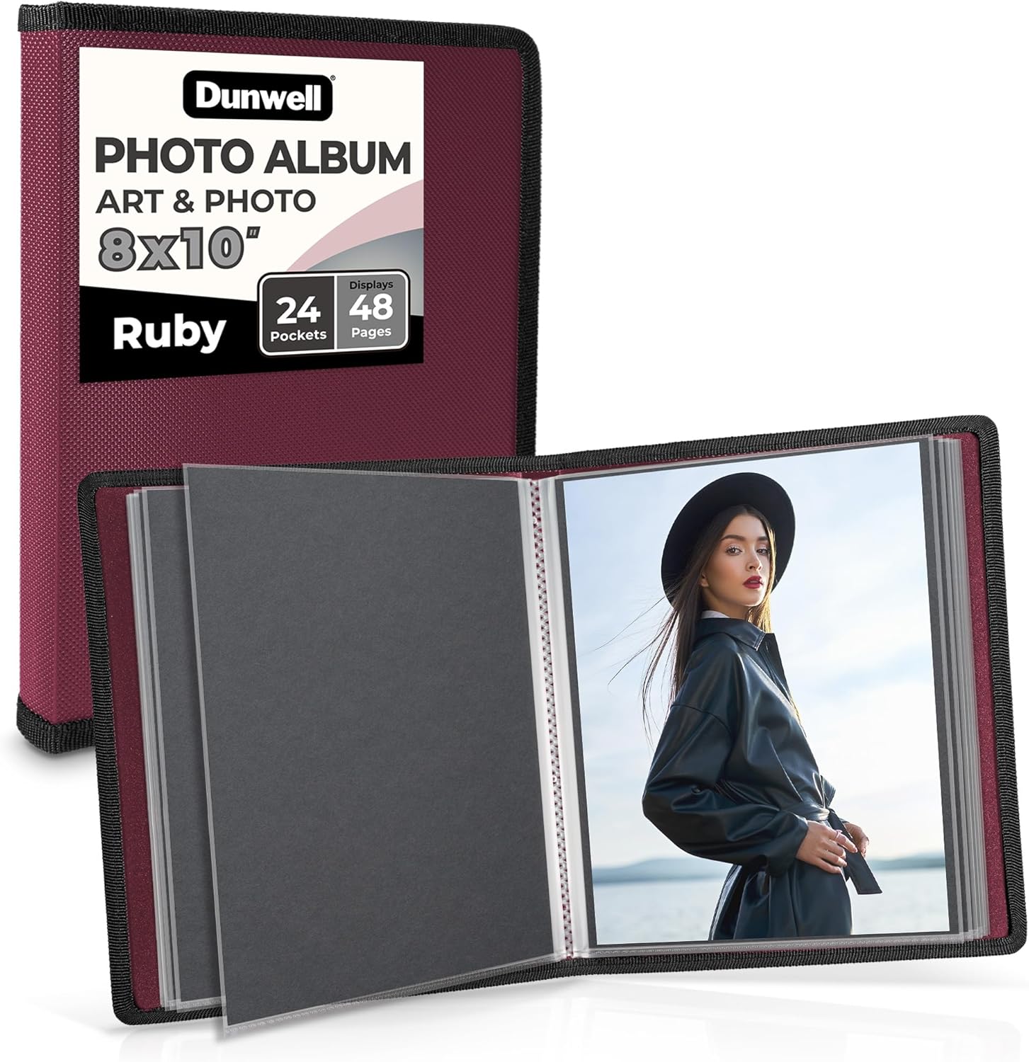 Dunwell Photo Album 8x10 (Ruby) with Black Mounting Paper, 8 x 10 Photo & Art Portfolio Presentation Book, 24 Clear Sleeves, Each Shows 48 Pages, Professional Photography Book for Pictures, Artwork