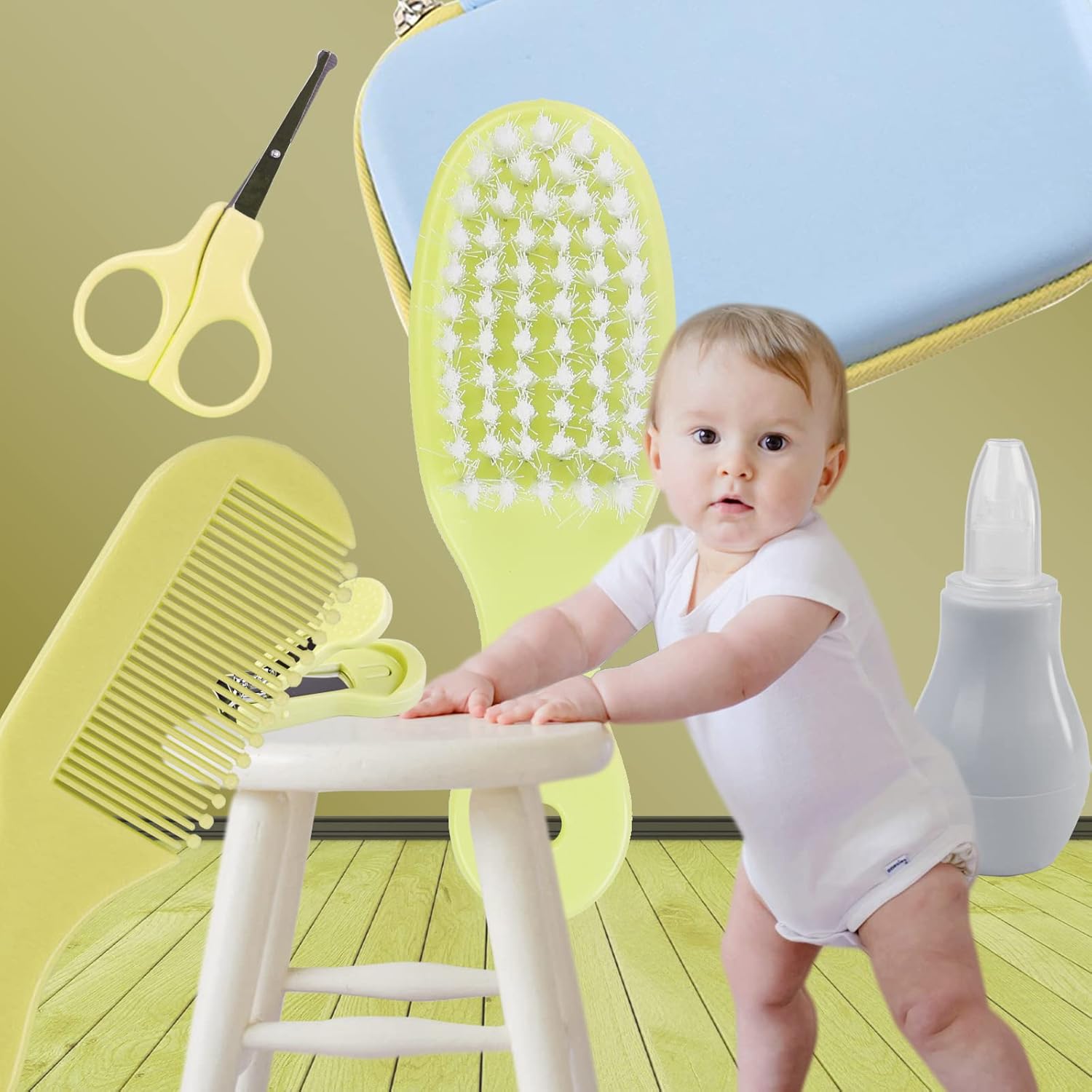 ZELINYE Baby Grooming Kit, 8 in 1 Baby Hair Brush/Nail Clipper/Nose Cleaner/Finger Toothbrush/Nail Scissors/Manicure Kit for Baby Care Keep Healthy and Clean(Yellow)