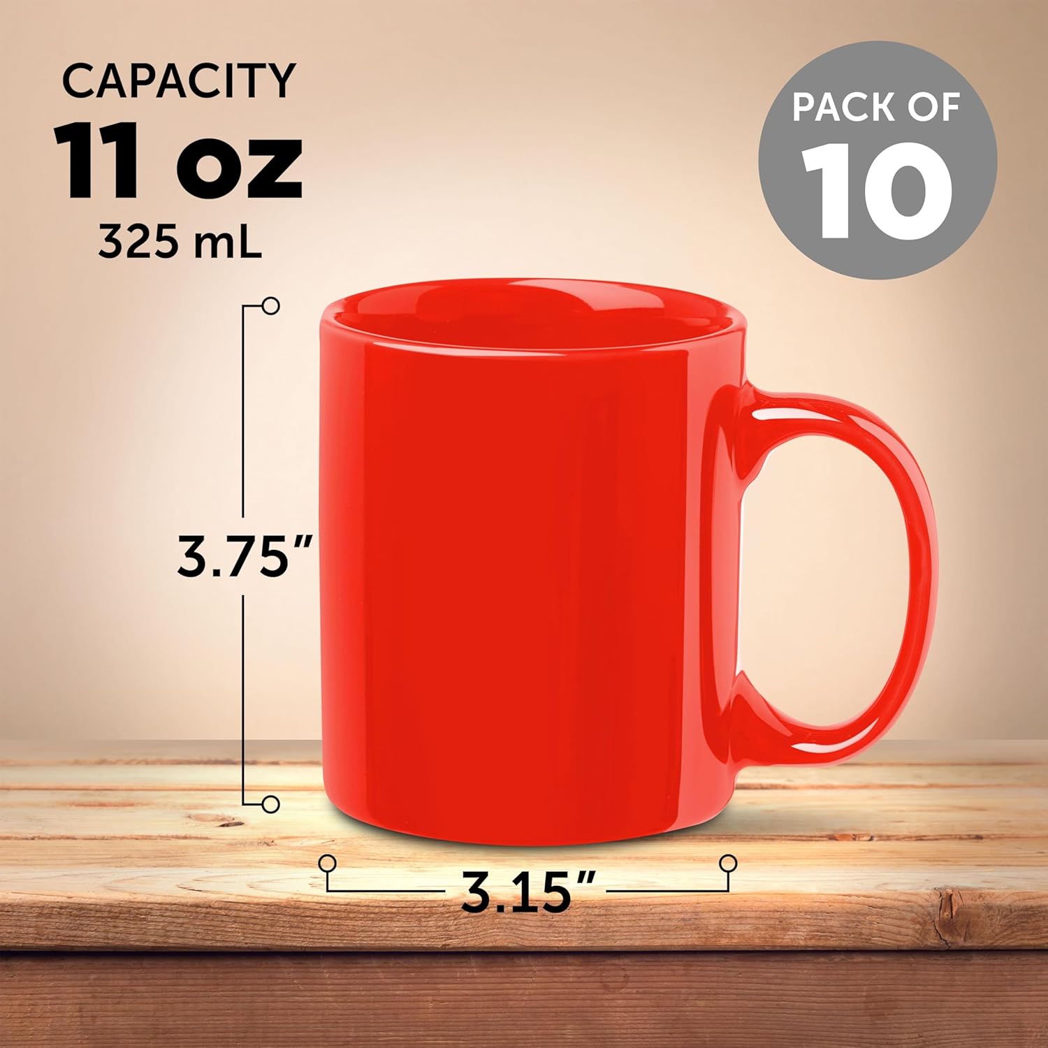 DISCOUNT PROMOS Ceramic Coffee Mugs 11 oz. Set of 10, Bulk Pack - Coffee cup set, Iced coffee cup, Gaming mug - Red