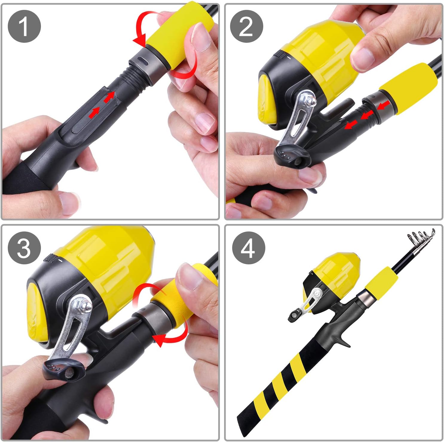 PLUSINNO Kids Fishing Pole, Portable Telescopic Fishing Rod and Reel Combo Kit - with Spincast Fishing Reel Tackle Box for Boys, Girls, Youth