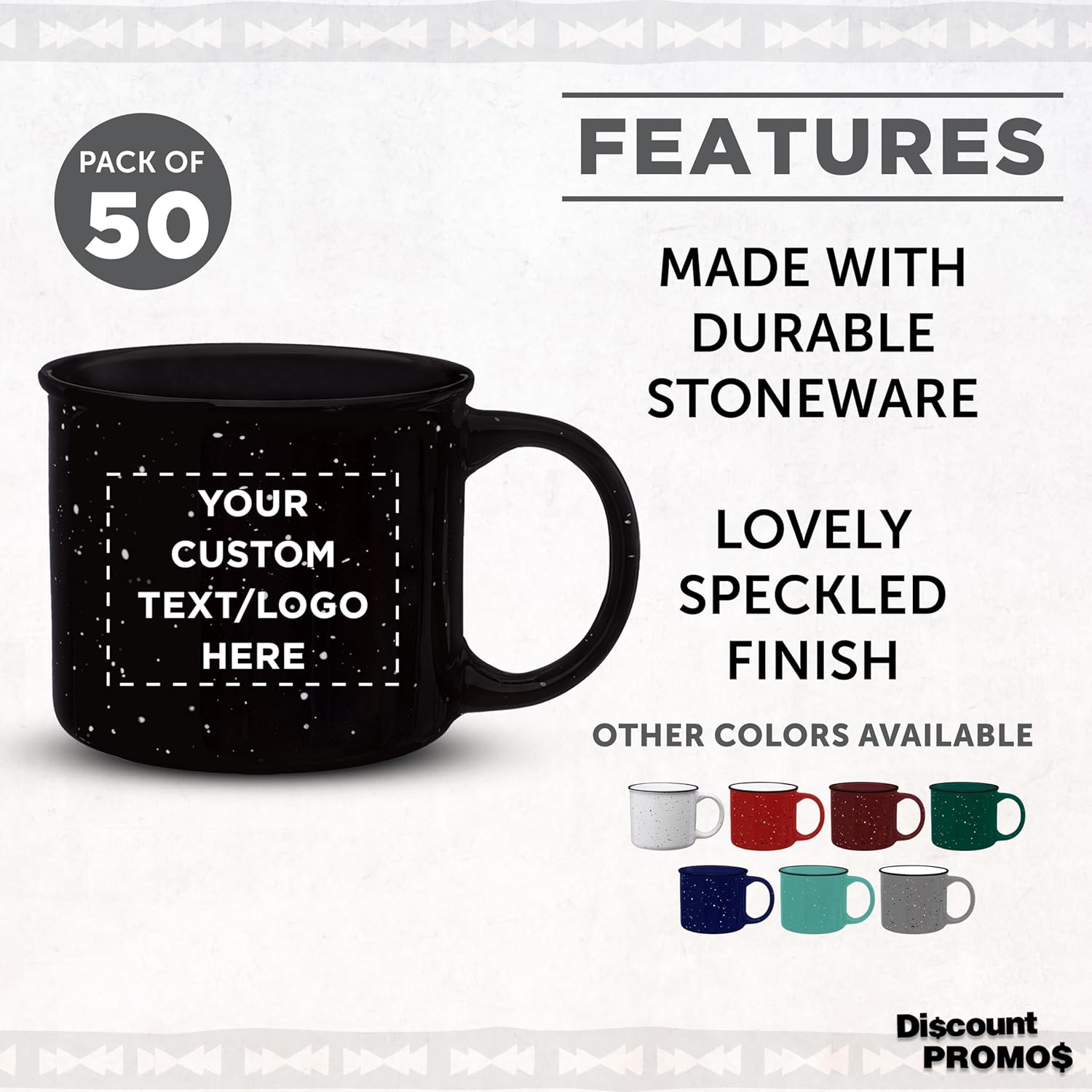 DISCOUNT PROMOS Custom Ceramic Campfire Coffee Mugs 13 oz. Set of 50, Personalized Bulk Pack - Perfect for Tea, Espresso, Cappuccino, Hot Cocoa - Black