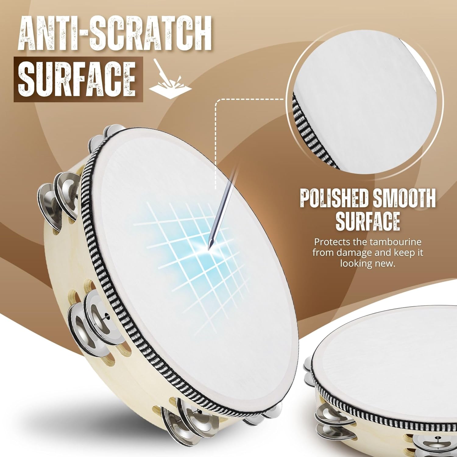 - Set of 2 professional tambourines - 8 and 6 inch sizes, double-row style produces a great sound when shaken or thumped