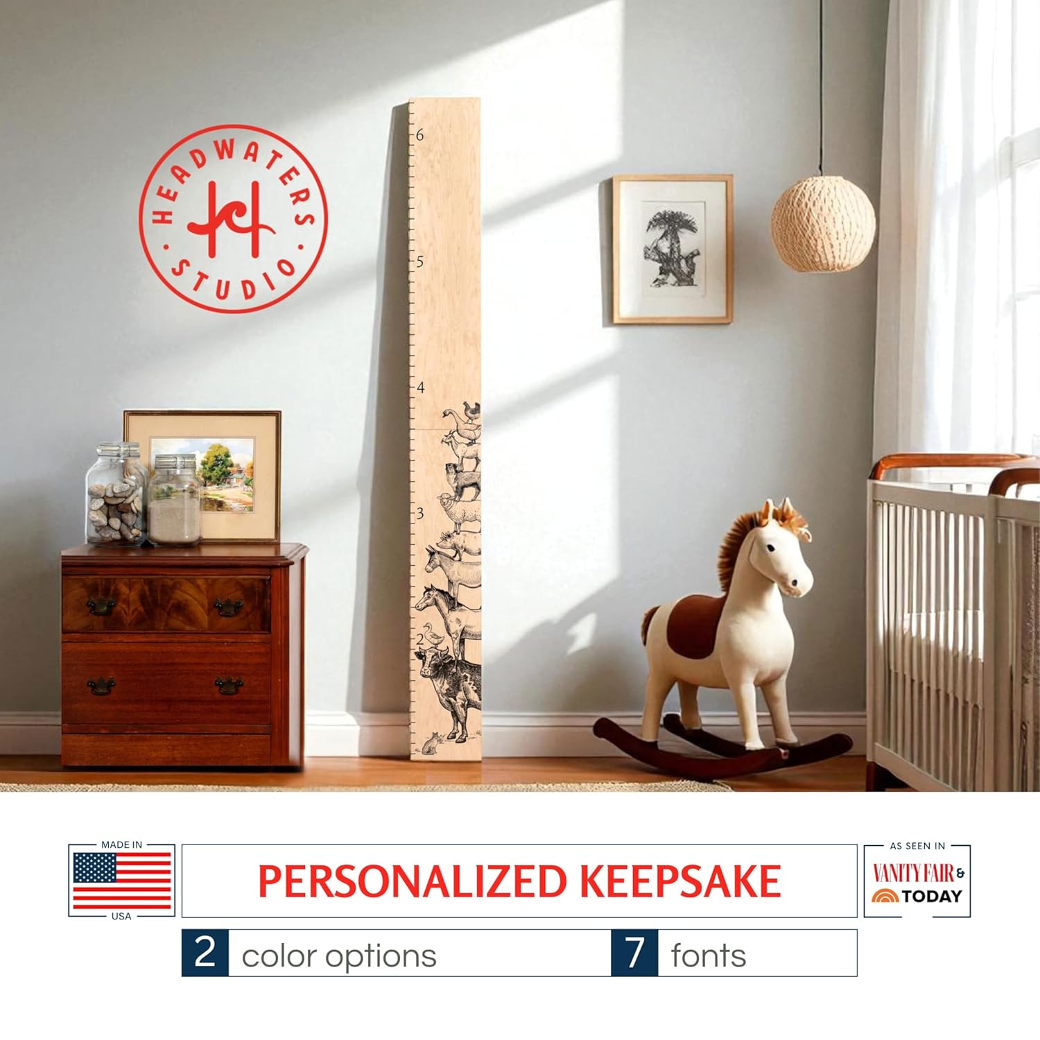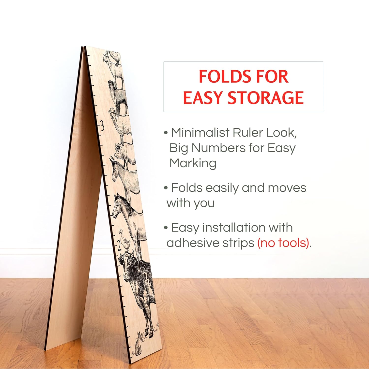 - 100% Wood, Made in the USA: Handcrafted in New Hampshire with sustainable plywood from Columbia Forest, this two-part folding growth chart measures up to 6'6" (6.7" wide), making it ideal for the entire family.