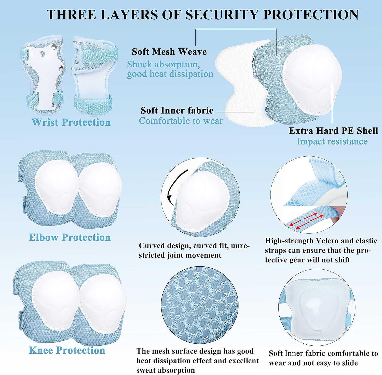 - 【Multifunctional Protective Sports Gear】: The kids bike helmet and knee pads elbow pads wrist guards are designed for kids sports safety protection, the tough pads with Velcro adjustable straps which can be flexibly adjusted to fit the child comfortable to wear. Protective gear set provides comprehensive safety protection for children