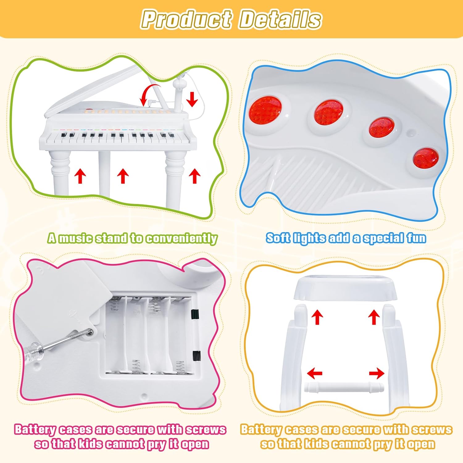 Love&Mini Piano Toy Keyboard 31 Keys for Age 3+ Year Old Girls Boys Birthday Gifts, Kids Keyboard Toy Instruments Piano with Microphone and Stool