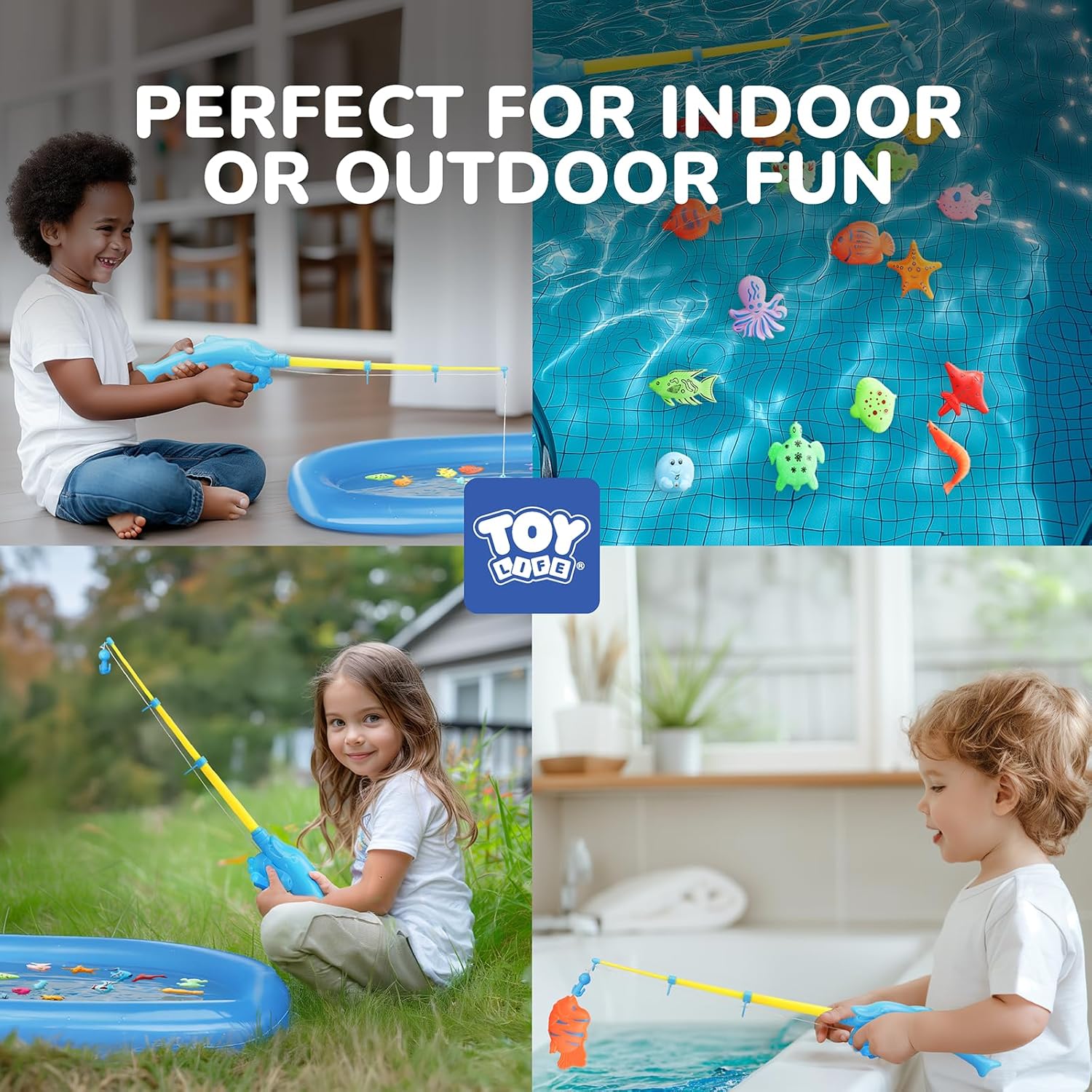 - DURABLE POLES AND HIGH QUALITY PIECES - We noticed our competitors have trouble with broken fishing poles. That's not something you will have to worry about with your Toy Life magnetic fish game. This set comes with 4 poles, 4 nets, 1 inflator, 43 magnetic animal toys inchuding fish, starfish, octopus, jellyfish, and so on. The magnetic fishing poles are also very flexible and can stretch freely without risk of breaking.