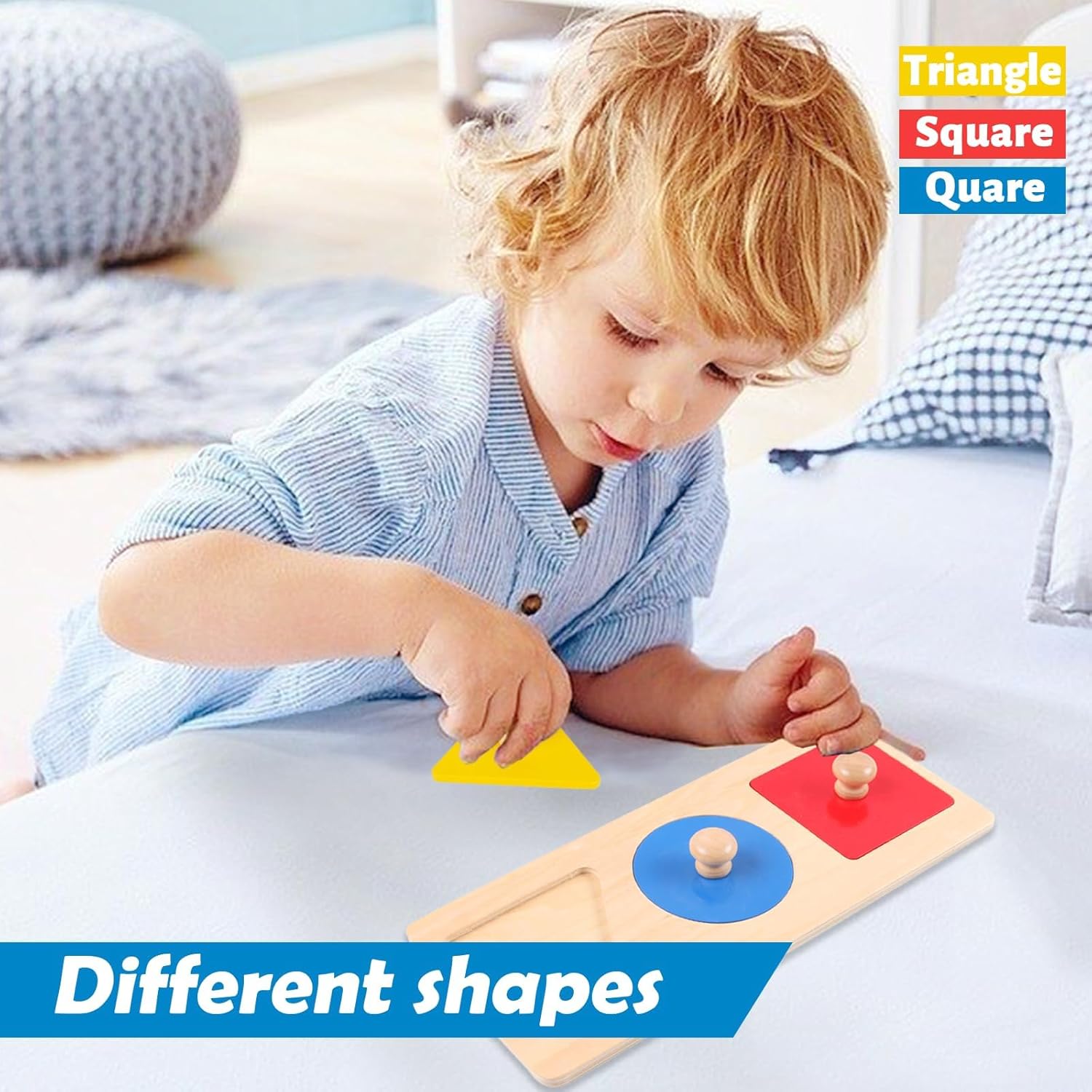 Adena Montessori Colorful Multiple Shape Puzzles Toys for 6-12 Months 1 Year Old Toddler Babies First Shapes Geometric Jumbo Knob Wooden Puzzle Color Sorter (3 Pieces)