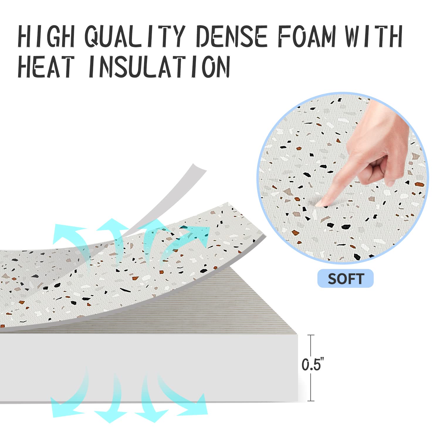 - β EXTRA THICK, EASY TO WIPE & NON-SLIP BACKING - Our foam mats for floor are 100% waterproof, easy to clean and built to last! Simply wipe away messes with a wet cloth and mild detergent and they will be good as new. With no extra cut-out pieces, our interlocking baby playmat fits together tightly and are resistant to being torn apart by those curious little fingers - less mess and no choking hazards - ever! Our mats are easily assembled and are the perfect play mats for babies and toddlers