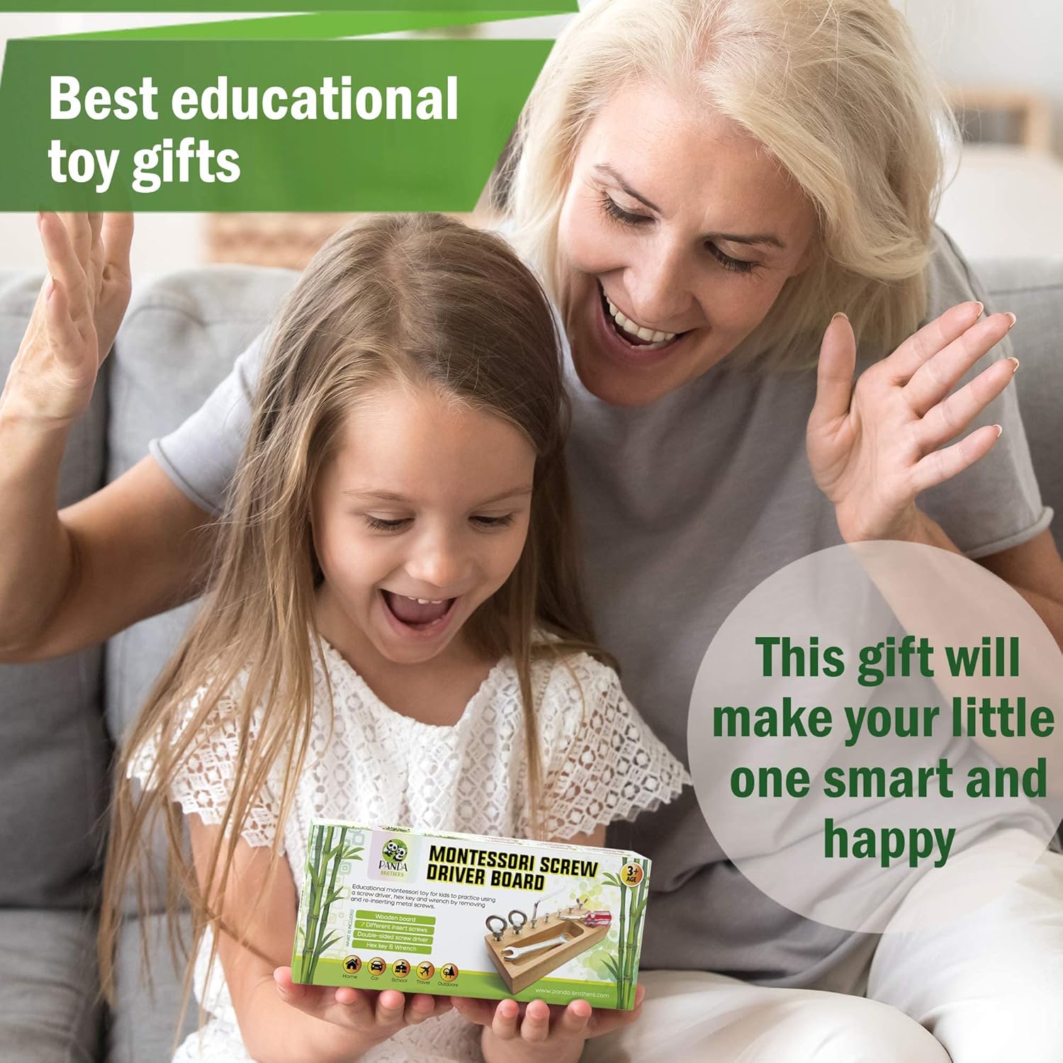 - π£ππ₯ππππ§ ππππ§ ππππ - Designed to turn the boring learning process into a creative and fun one, our Panda Brothers Montessori Screw Driver Board is the best gift for kids and toddlers. The beautifully wrapped and ready for gifting board will not only make your little one smart and happy but also get him or her a sense of satisfaction for completing real-life tasks