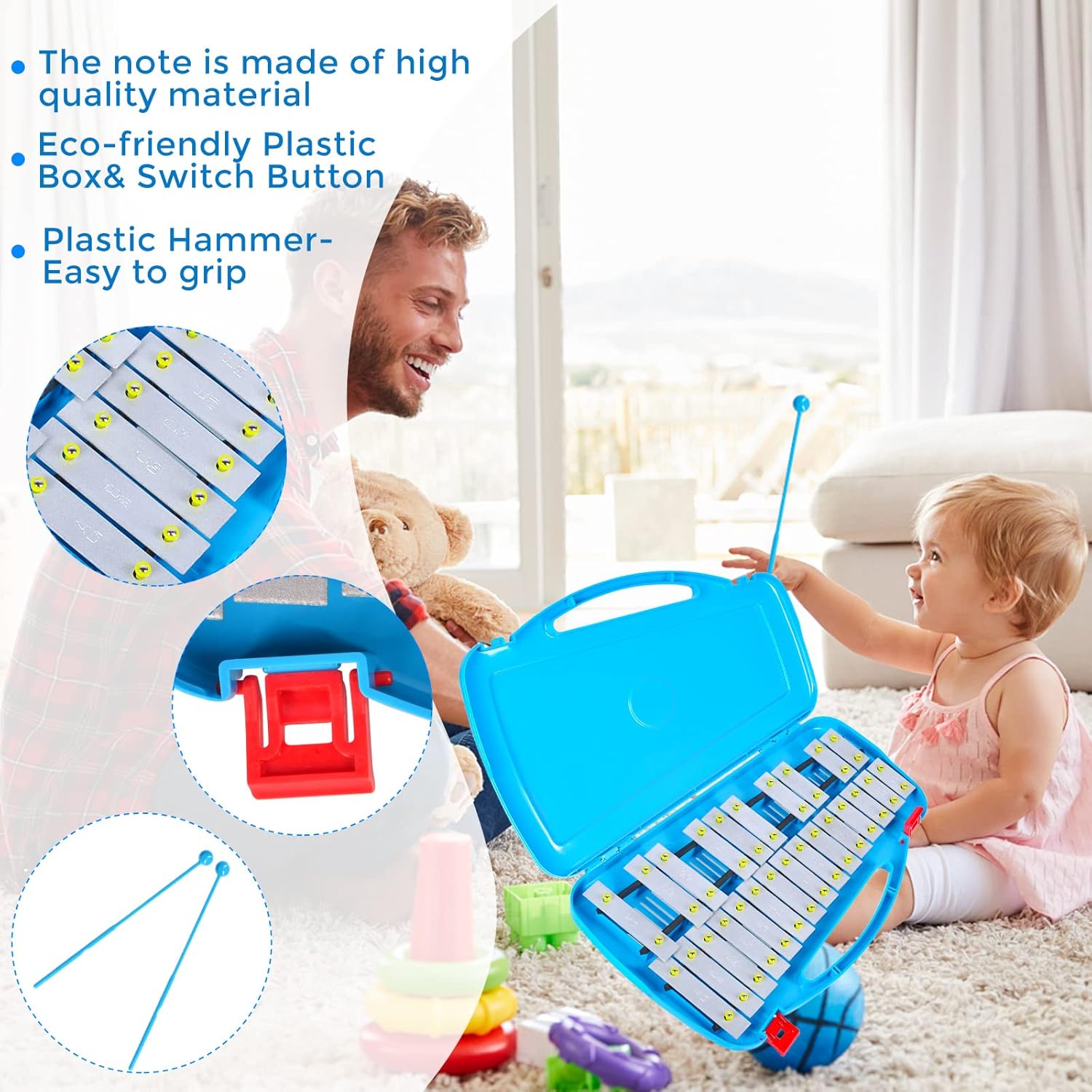 - Friendly Design - Glockenspiel is specially design for children, sound blocks with perfect tuning, Each of the 25 sound bars is elaborately made. It fits into the foundation of your child's music