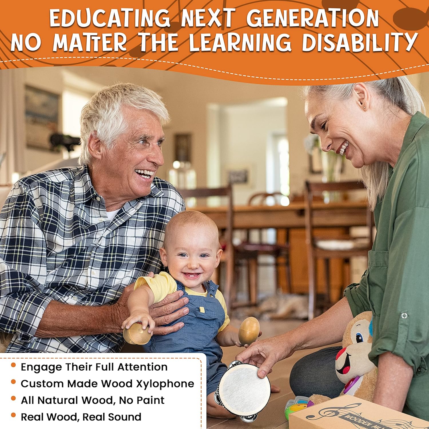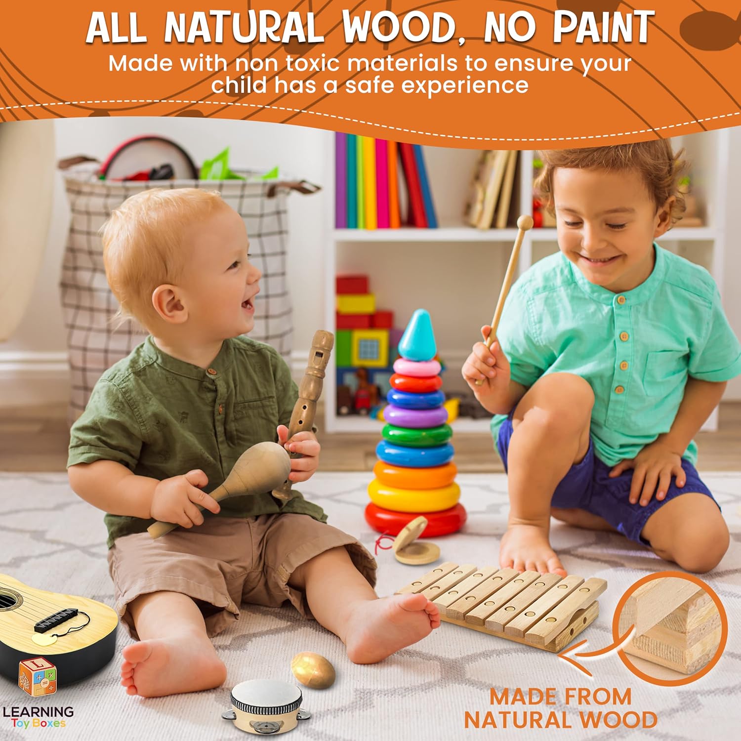 - ★【Real Wood, Real Sound】With the use of real quality wood our toddler learning toys will last you longer, have real wood sound, and give your child an experience of the soothing nature of wood and texture of our toddler musical instruments.