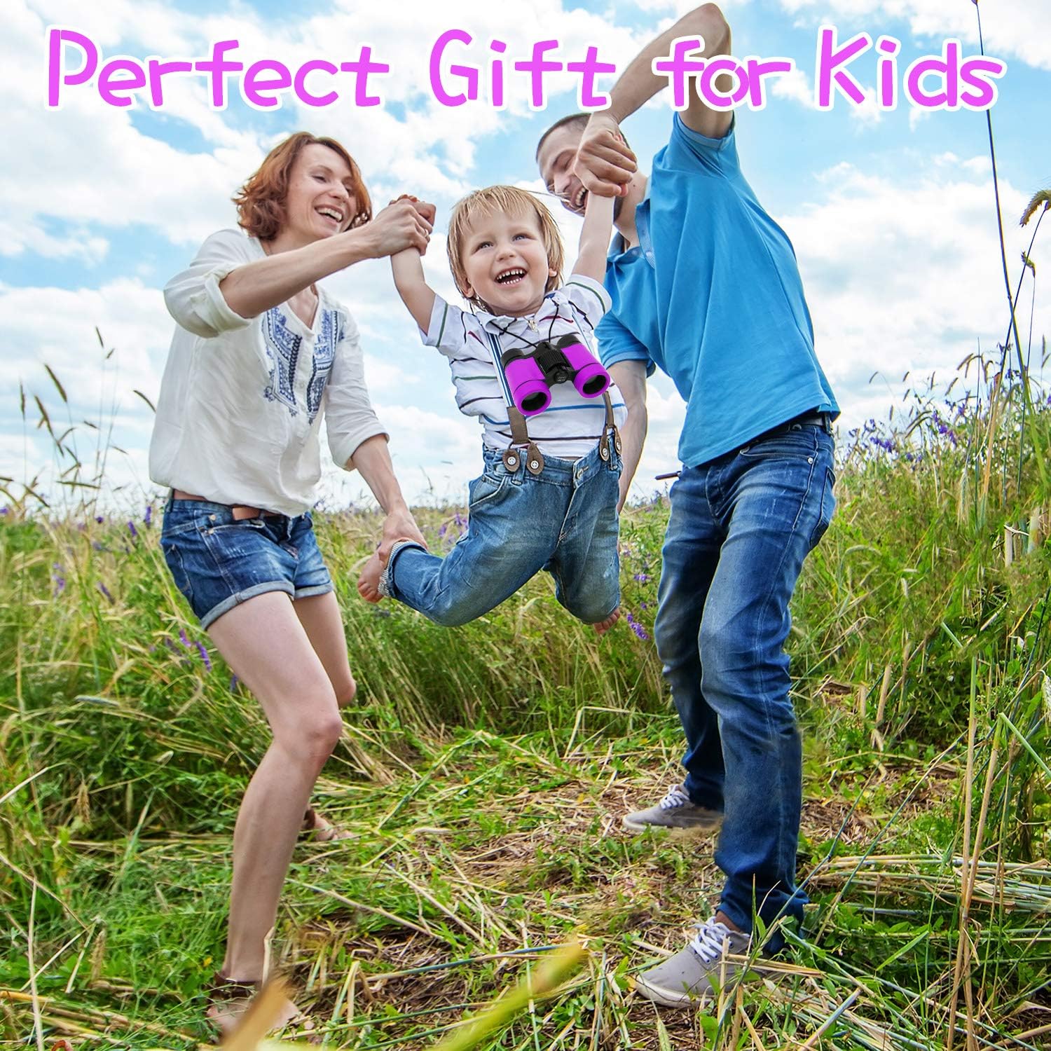 • SAFETY - Binoculars Are Made Of Nontoxic Natural Rubber Material, Rubber Surrounded Eyepieces Are Included For Eye Protection So Children Don't Hurt Their Eyes Or Face.Designed especially to avoid harm for a young child`s little eyes. Features: Lens with relatively low 4x zoom so your child can examine the world up close; Soft eyecups ensure a comfortable fit; lightweight; Glue-free; Neck strap so your child won’t lose them; Non-slip grip; and is made from quality materials.