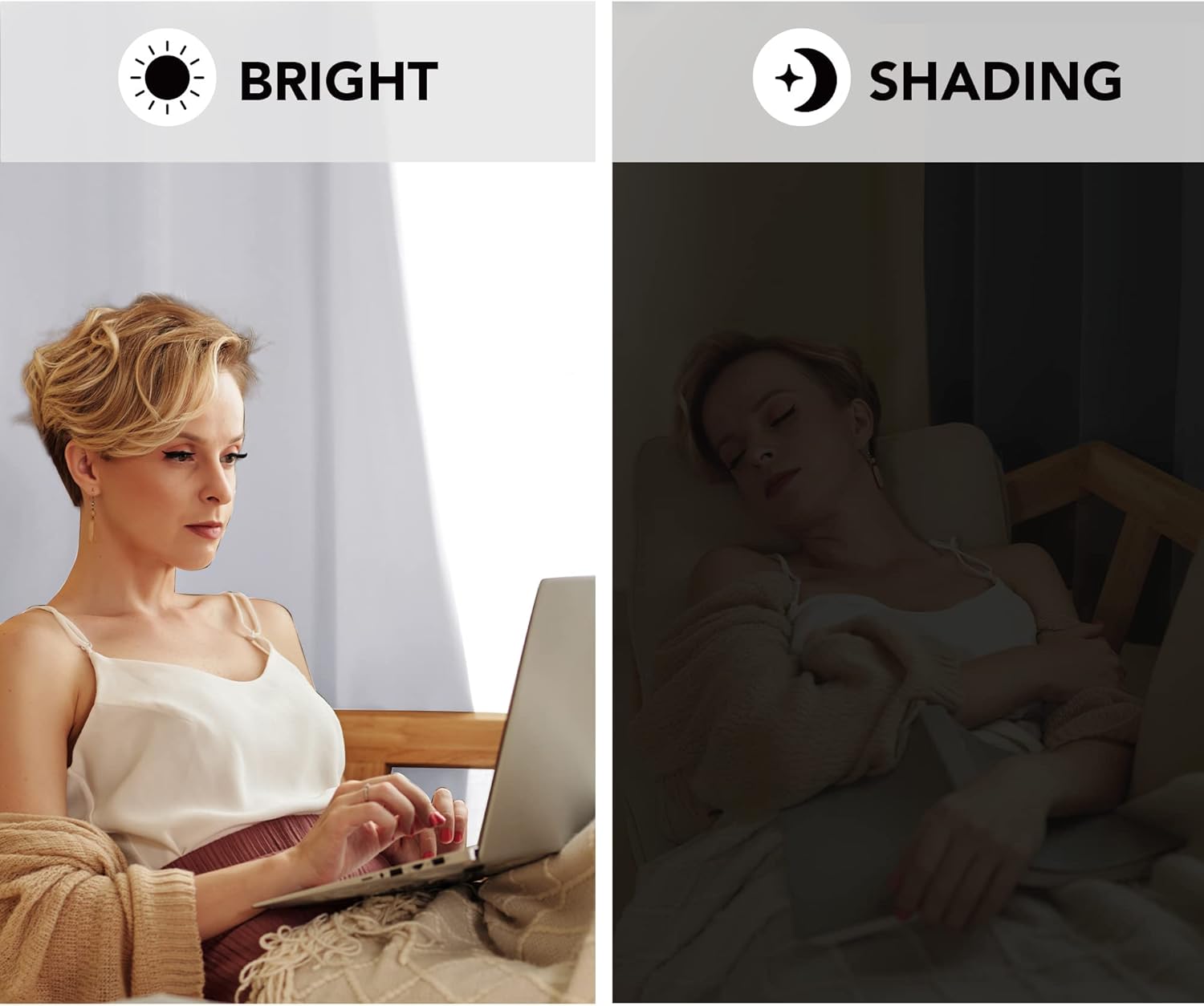 - Sleep when the world’s awake. You get room-darkening that helps you rest better—dark colors block up to 99% of light; lighter shades soften daylight for a calm glow.