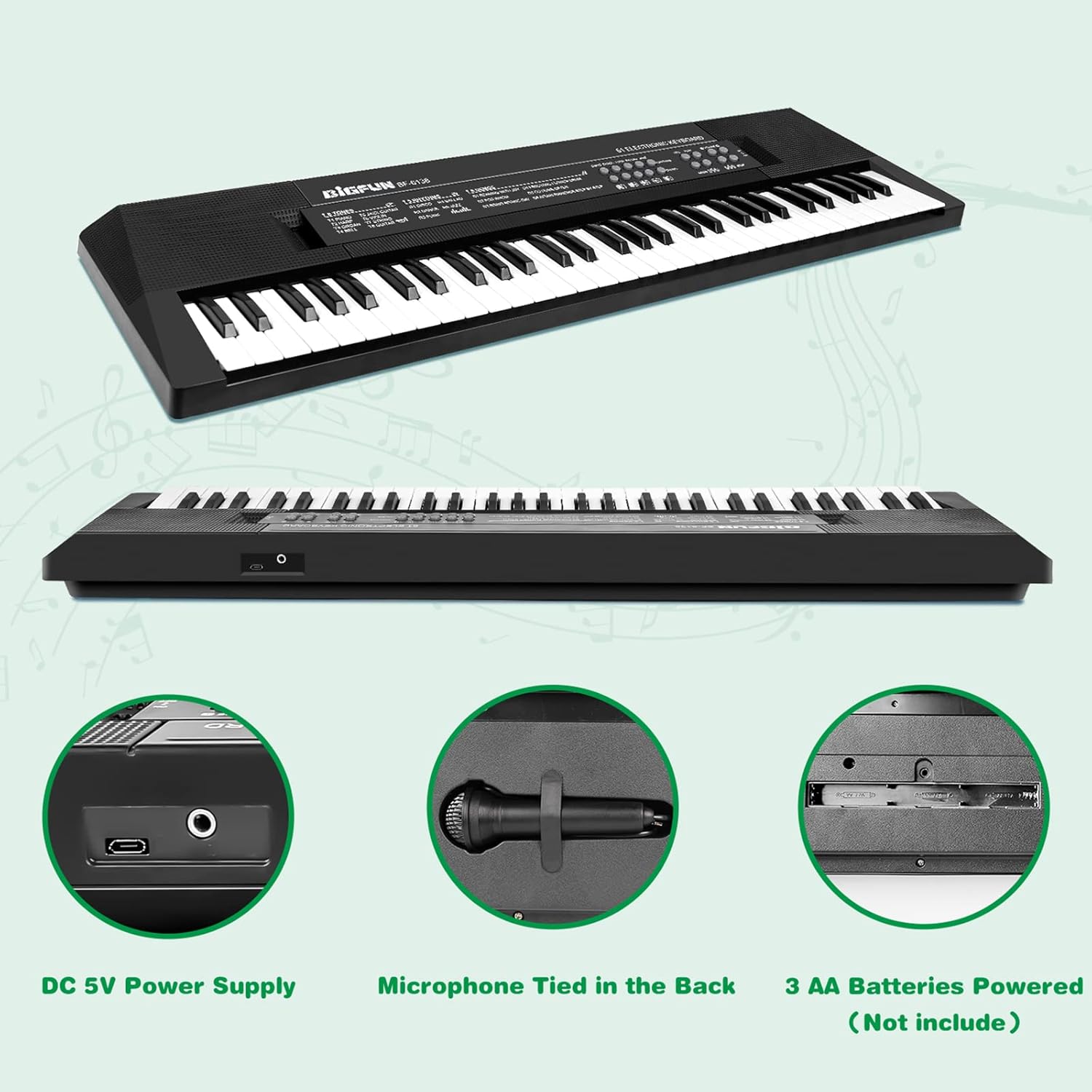 - Easy to use: The compact and portable 61 keyboard piano can be powered by battery (battery not included) and USB power. Press the power on/off button and the keyboard will work. Very suitable for use in family and travel. This product is suitable for children over 3 years old.