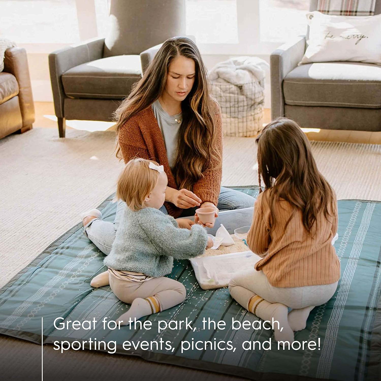 Little Unicorn 5'x7' Outdoor Family Picnic & Beach Blanket | Durable & Water-Resistant Fabric | Compact Fold & Easily Wipes Clean | Zipper Pocket (Shoreline Stripe)