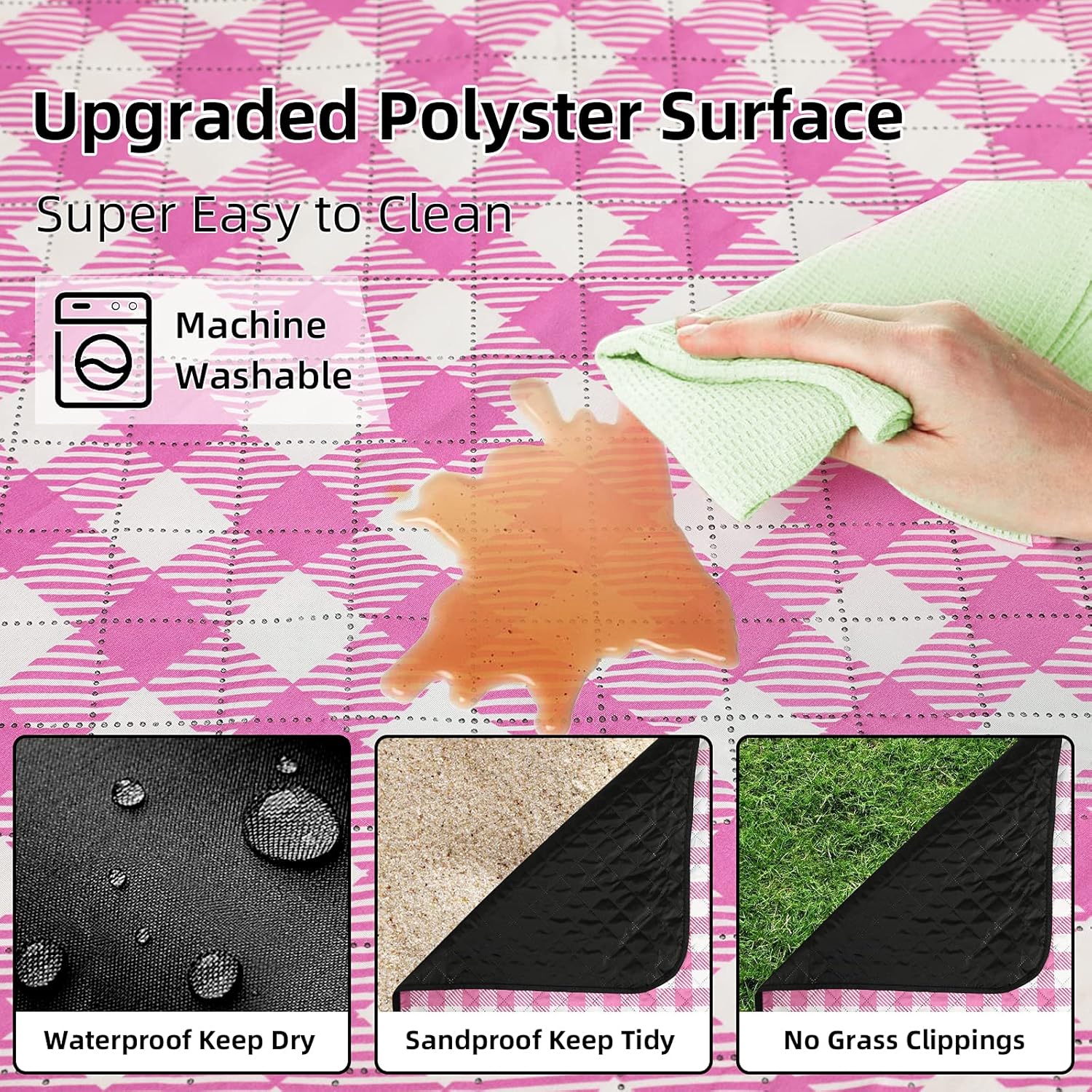 - Easy to Clean & Machine Washable: Outdoor picnic blanket is super easy to clean due to its double waterproof surface and backing, easily shake & wipe off dirt, mud, wet grass, and beach sand. And you could put it into washing machine to save your time and liberate both hands.