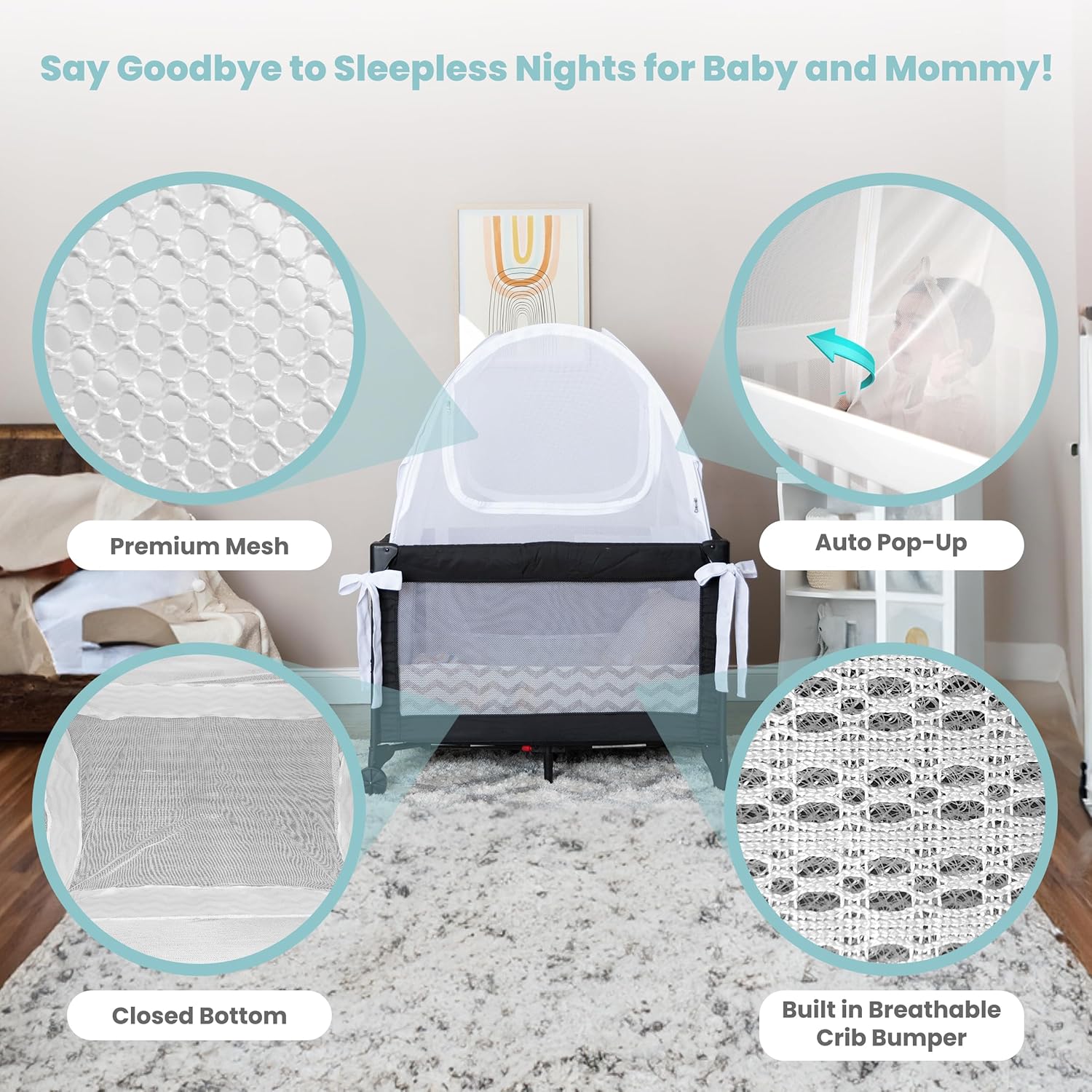 - Prevents Climbing and Falls β Provides essential safety by preventing your baby from climbing out. Also functions as a mosquito net for peaceful sleep.