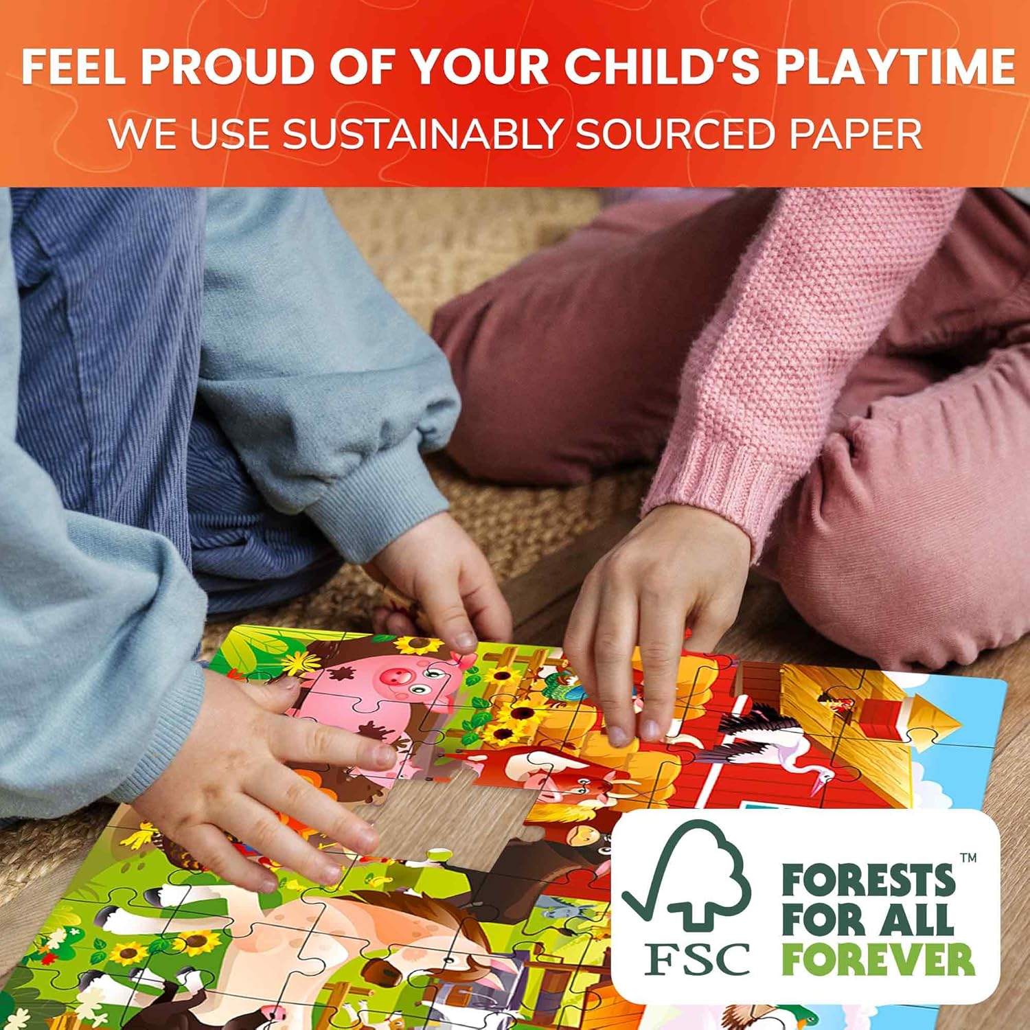 QUOKKA Puzzles for Kids Ages 4-6 – 4 x 48 Pieces Jigsaw Puzzles for Toddlers 2-4 – Children's Game Ages 3-5 for Learning Farm Animals – Educational Preschool Toy for Boys and Girls 4-8 Years Old