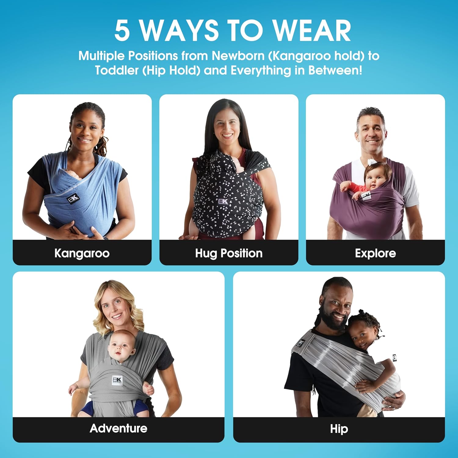 - [5 POSITIONS to WEAR BABY]: Our infant carrier wrap grows with your child - choose the best position from SWADDLE wrap hold for preemies & newborn babies, to an upright seated carrier for all babies up to 35lbs. A baby wrap carrier that holds newborn to toddler, it's MACHINE washable & DRYER safe, and a top choice for baby items must-haves on your baby registry. (Under 8 lbs., consult medical professional)