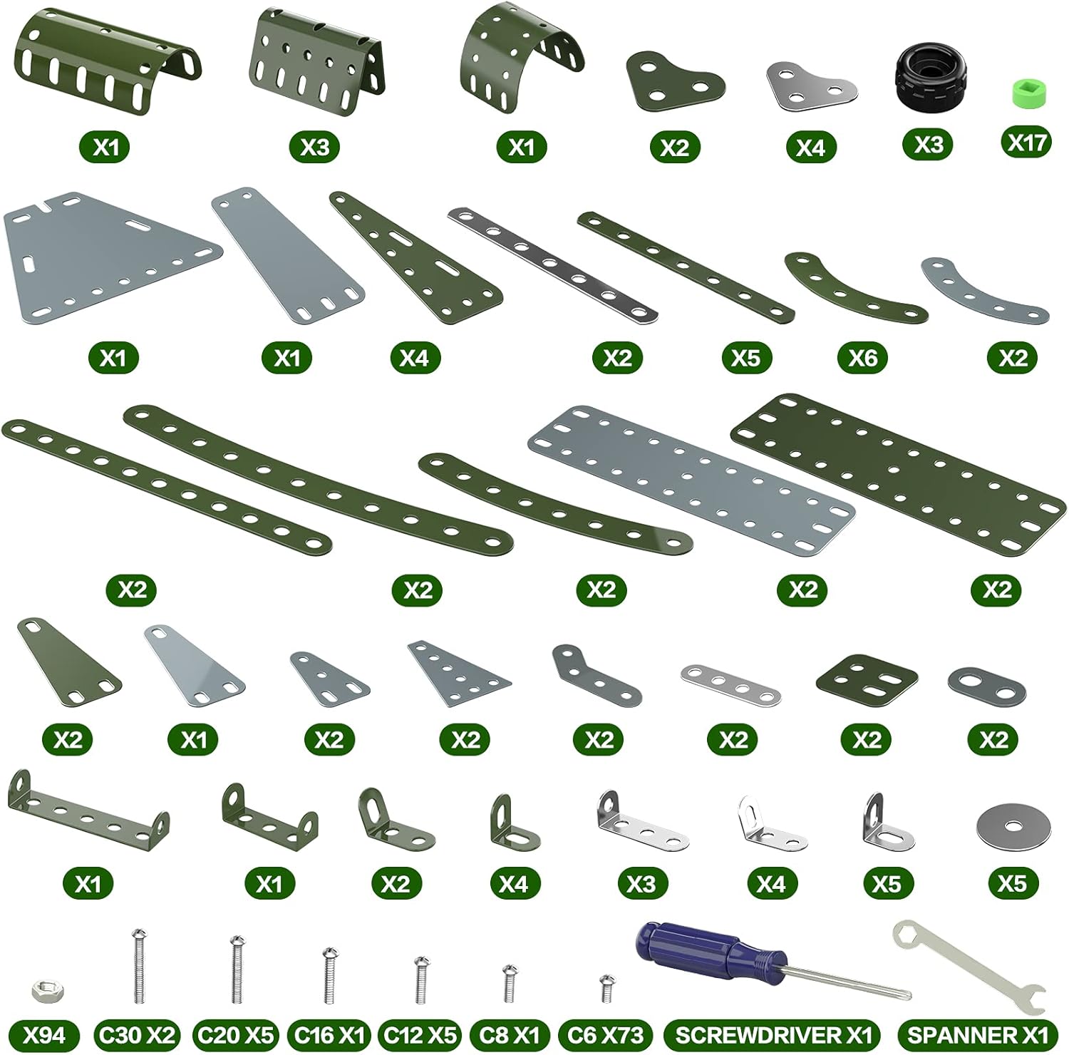 - Metal Made - Our building toys set includes 258 parts and pieces, such as nuts, bolts, screwdriver and wrench, etc. Made of metal, which can stand rough play without worrying about easy collapse. A great careful crafting STEM building kit, worth paying a little more compared to full plastic versions.