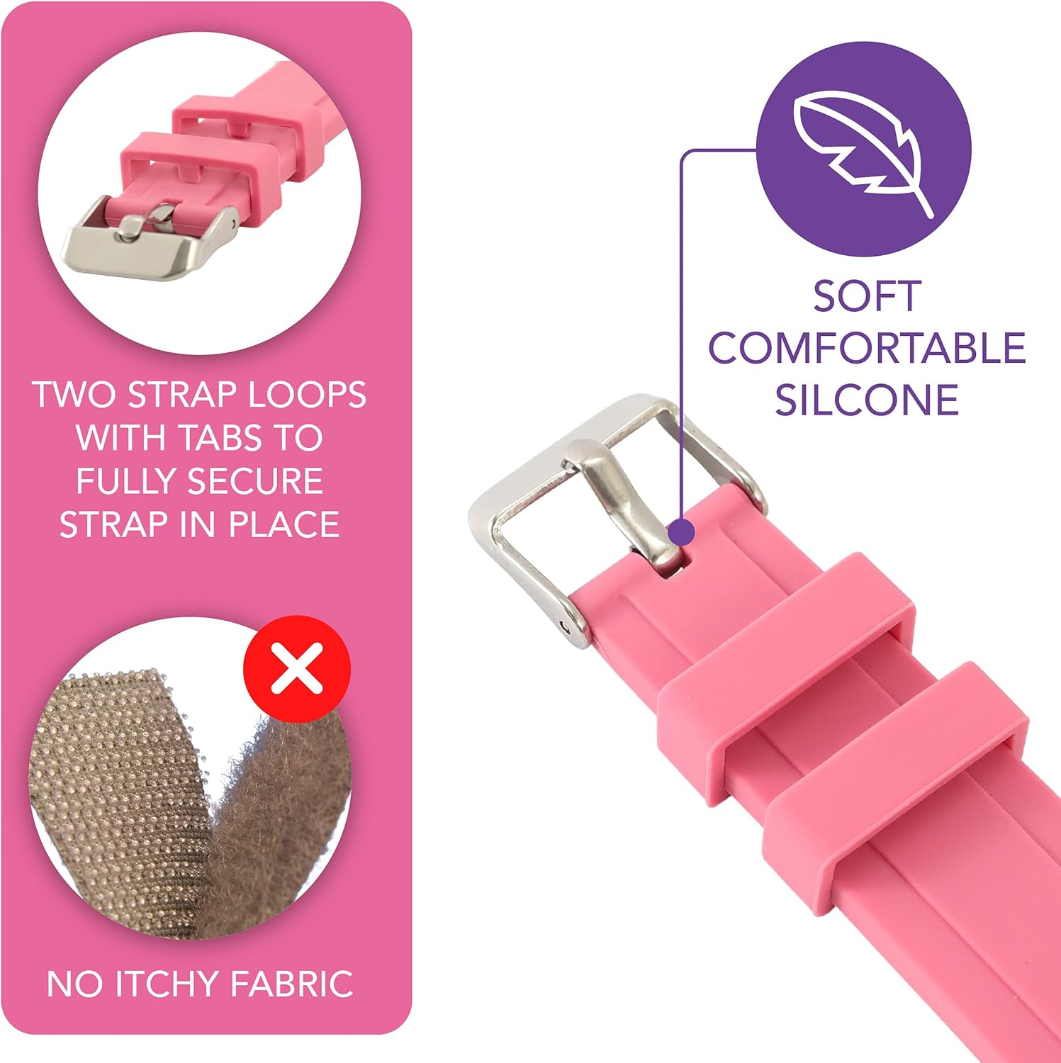 - QUALITY: Soft Pink silicone watch strap. Stainless steel back. Mineral Glass for the best clarity. This is not a kids waterproof watch but it is water resistant for everyday use.