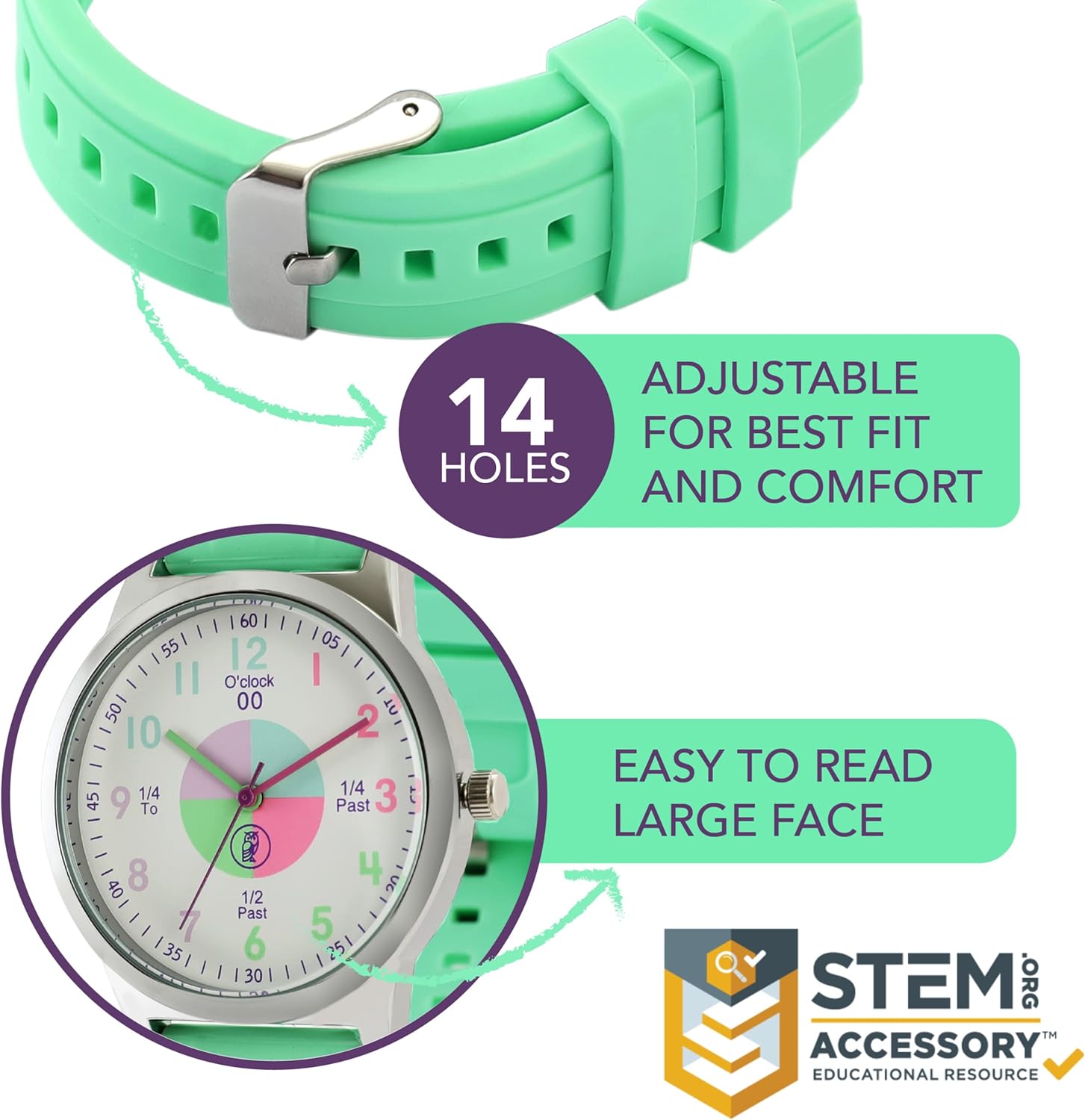 - EASY TIME LEARNING: With our instructional watch, no technical expertise is required! Our educational imported watch has ALL THE MINUTE NUMBERS and the watch hands are brightly colored to help children learn to read the time.