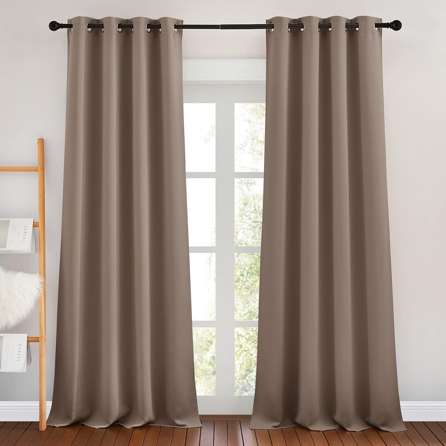 NICETOWN Kitchen Blackout Curtains and Drapes - Triple Weave Energy Saving Thermal Insulated Solid Grommet Blackout Panels for Patio (1 Pair, 46 inches by 90 Inch, Cappuccino)