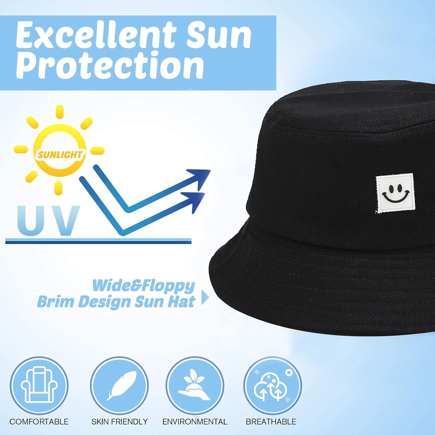 - 【Lovely and Stylish】Designed for unisex,our bucket hats come in various distinct colors to match your children individuality.The pretty smile logo makes it a great design.Easy to wear and pair with other clothes,suitably perfect for both boys and girls.Makes your kids more adorable, fashionable and attractive.Ideal gift for your cute baby.