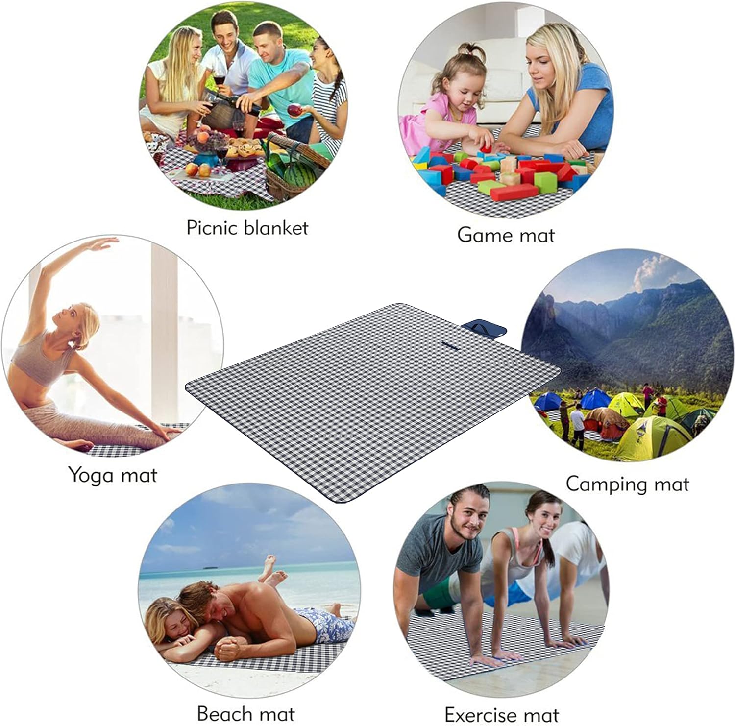 - MULTIPLE USE BLANKET ๏ผ It is not just a large picnic mat, you can use it for beach blanket, camping blanket, RV blanket, baby play mat, yard blanket, waterproof blanket, emergency blanket or throw blanket. It is the perfect choice for the park, the beach, outdoor, fishing, sporting events, soccer games, concerts, hiking.