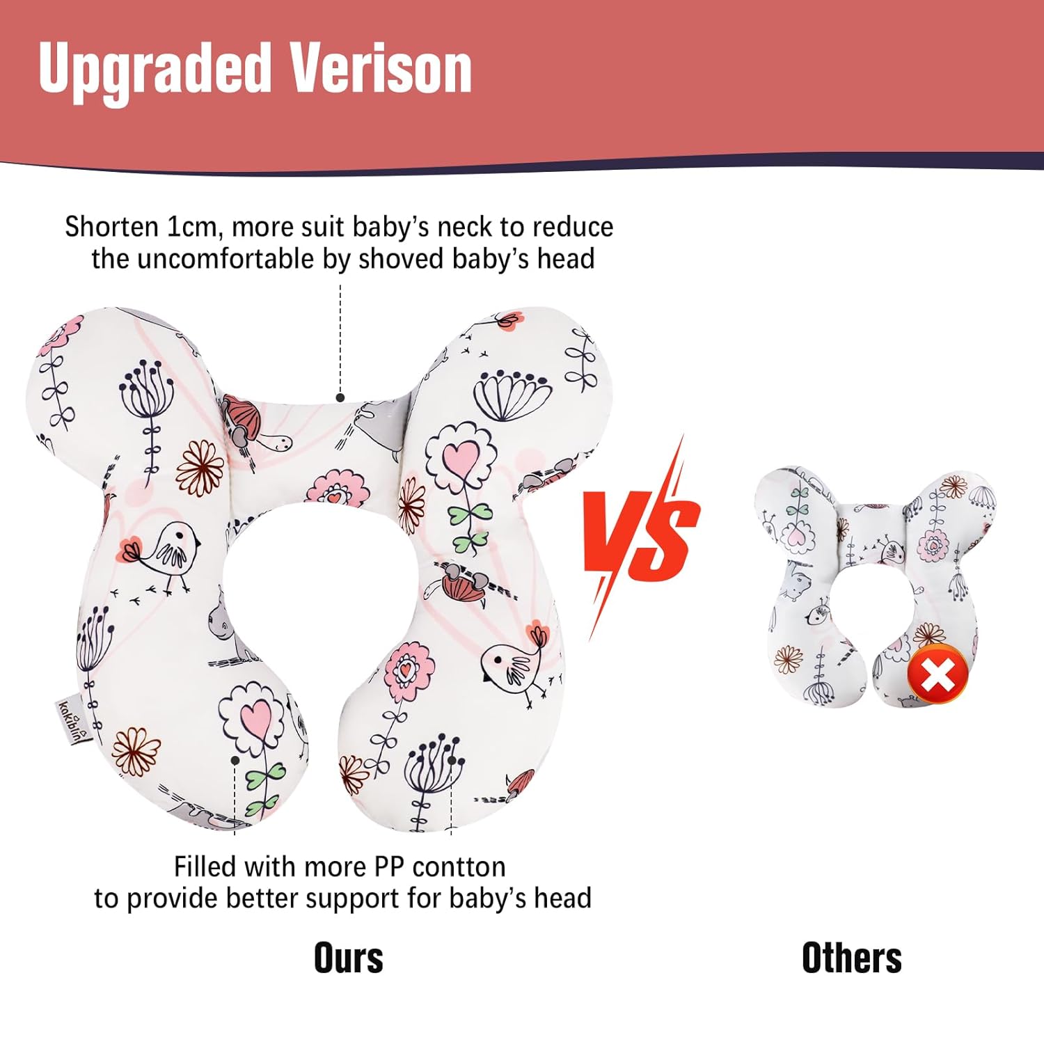 - U Shaped Design(upgraded): baby support pillow filled with more PP cotton for the two side which can provide a better support for baby’s head, and Reduce width of the neck support part which may not push baby's head to feel uncomfortable
