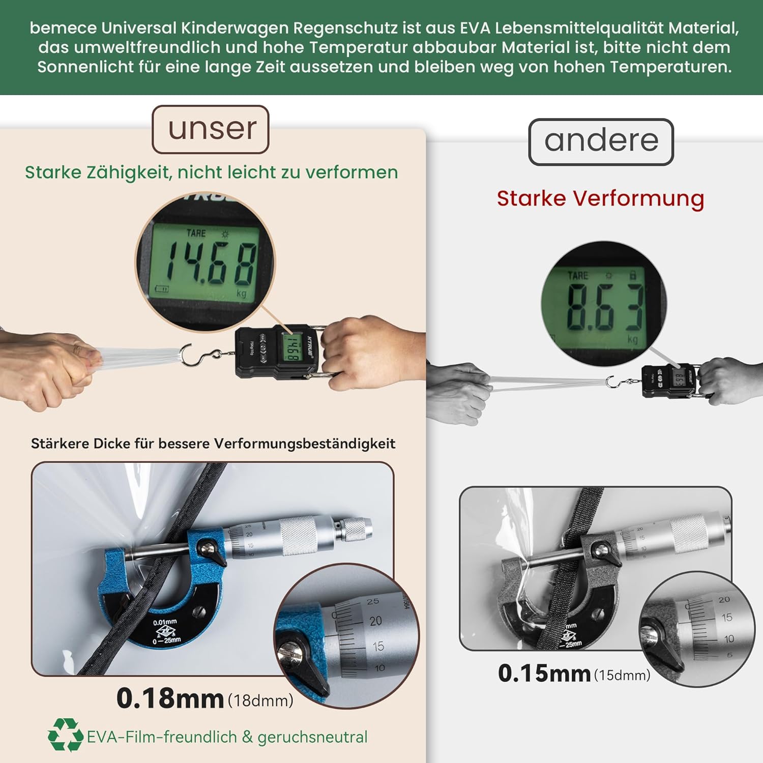 - Universal Size: Bemece rain cover is suitable for most strollers, pushchairs and baby carriages. Dimensions: 37.5 x 22 x 43 inches