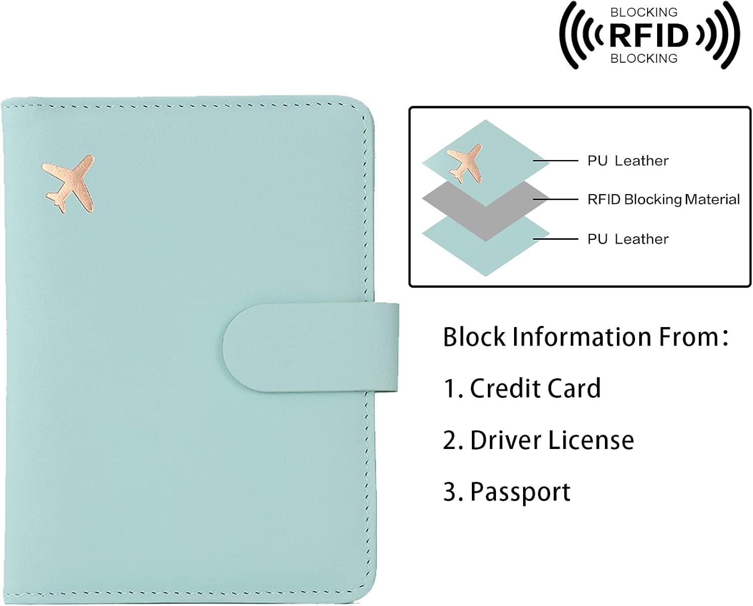 - 【Snap Button Closure and Security Protective】The passport holder with the hidden magnetic snap button closure design, which is safe and reliable to protect your travel items from being lost,to provide dual protection.Besides,RFID blocking shield material inside, Our passport case has a material engineered specifically to block 13.56 MHz or higher RFID signals and protect our important private information stored on your passport and credit cards from unauthorized scans.