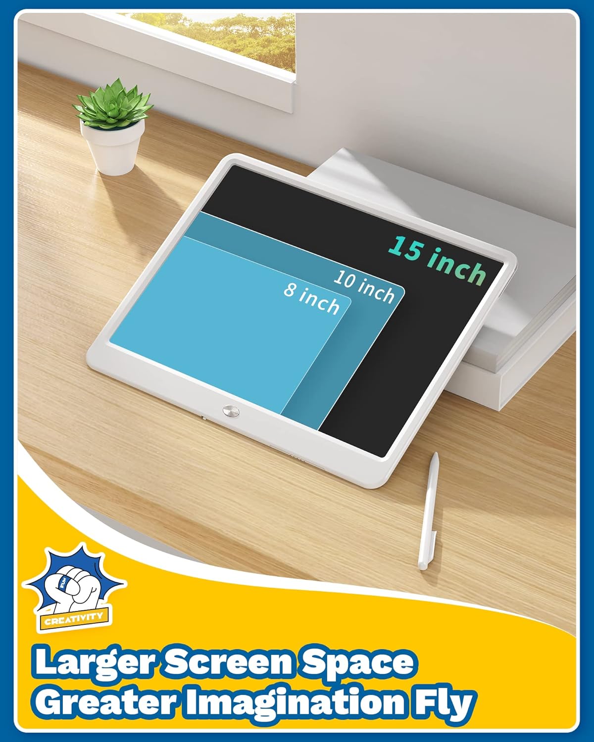 - Great Gift Choice for all age groups: Do you have a hard moment for picking a unique gift for your families or friends? Have a look at this multi-use 15inch LCD writing tablet! A suitable gift for men, women, children, teen boys and girls who have everything. It would be a surprise gift to be received on Christmas, Thanksgiving, Birthday, Teacher's Day, Mother and Father's Day, Children's day, etc.