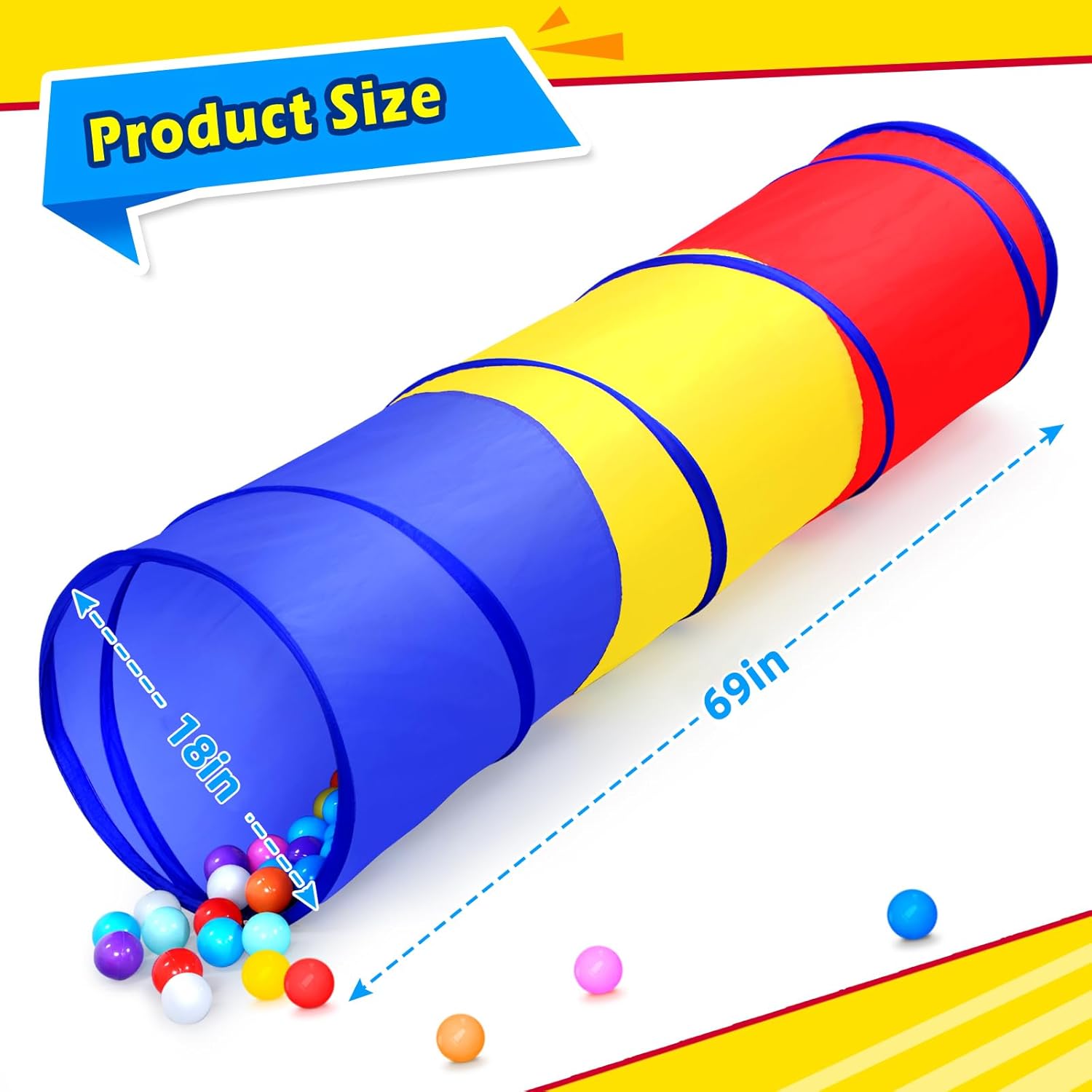 - 【Perfect Present】The kids playhouse tunnel is the best choice for Birthday and Christmas gifts and Surprises. Because our play tent Tunnel is perfect for Preschool education in daycare, preschool, kindergarten, or play inside and outside activities, such as backyard, parks, or playground. The Colorful Play Tunnel Crawl Tube is also suitable for Pets, Cats, Dogs, and so on. (The balls are not included)