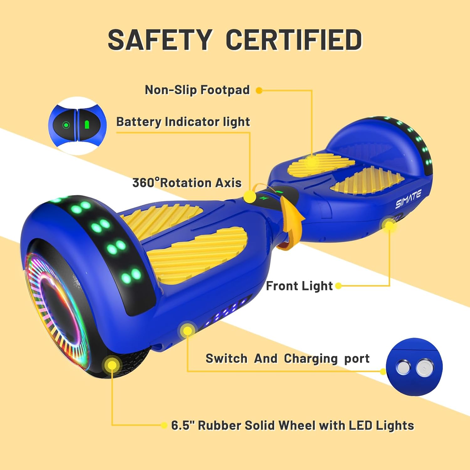 - Advanced Self-Balance Technology - The SIMATE scooter for kids 6-12 is designed with a self-balancing control system, perfect for all ages people(easy to learn and use). Everyone can drive well.